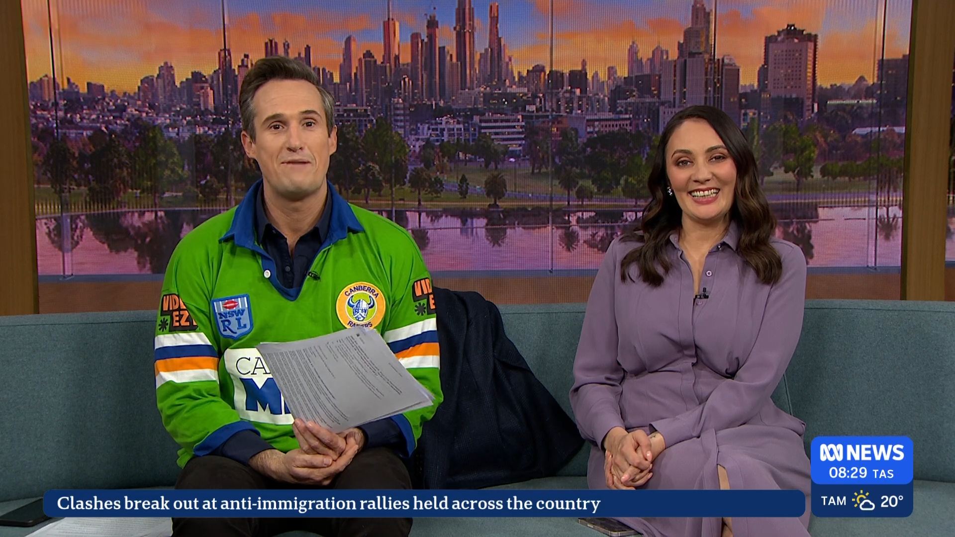 Friday(05.08.2025): Catherine Murphy is co-hosting with Emma this morning. Johnson Raela is presenting sport. No separate news or weather presenters today.