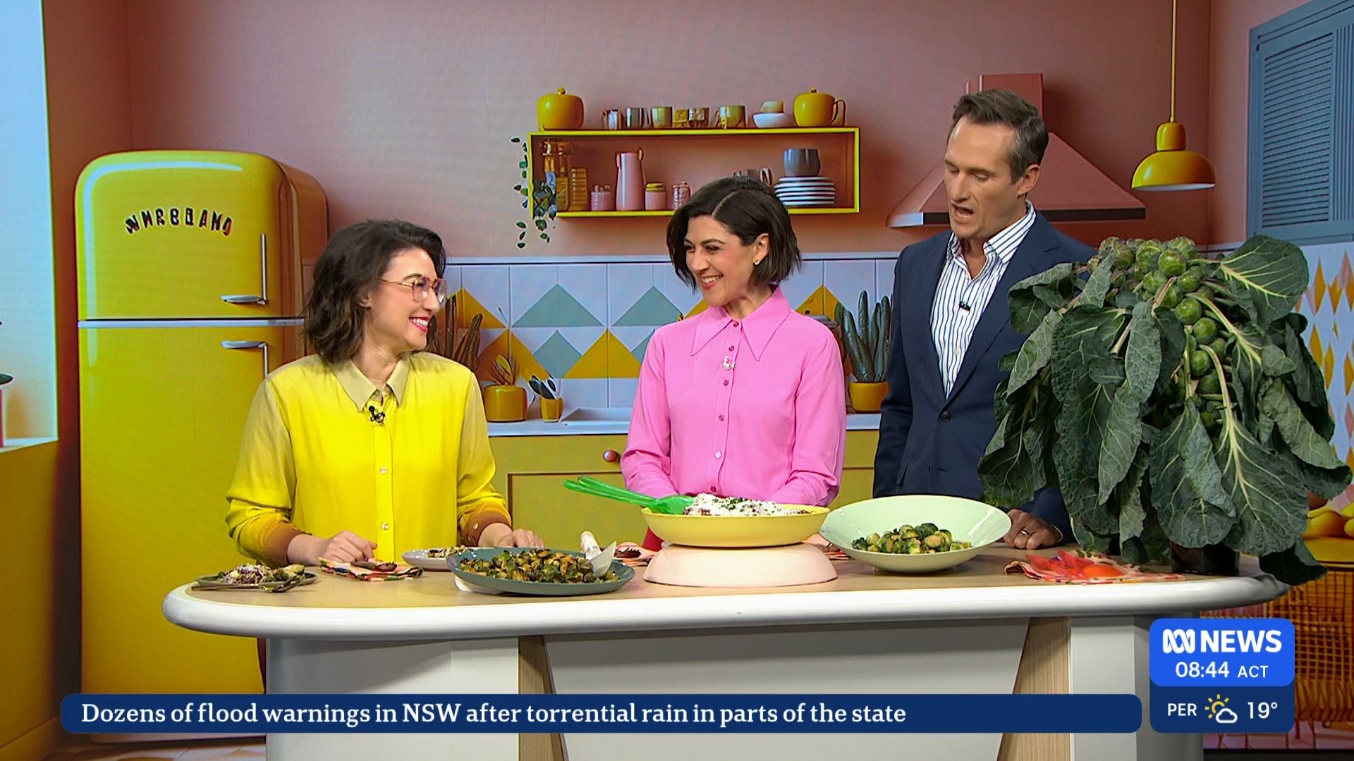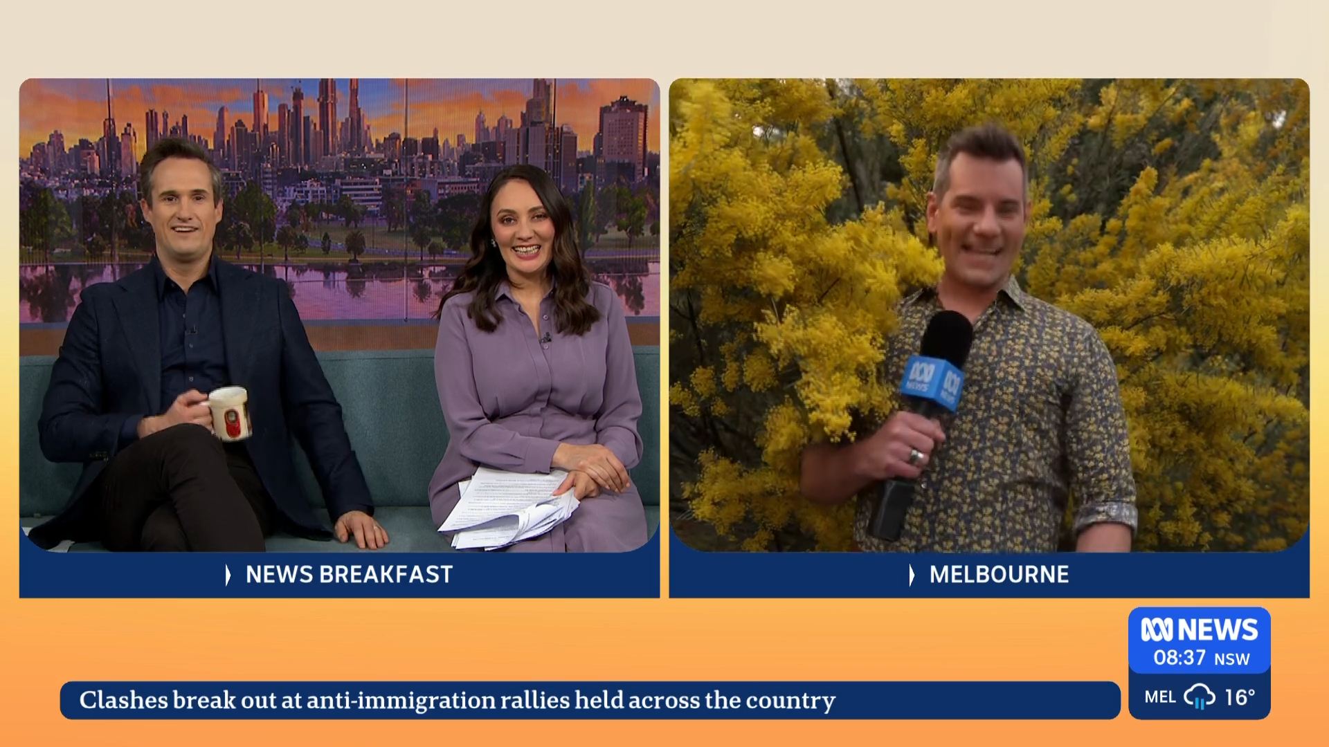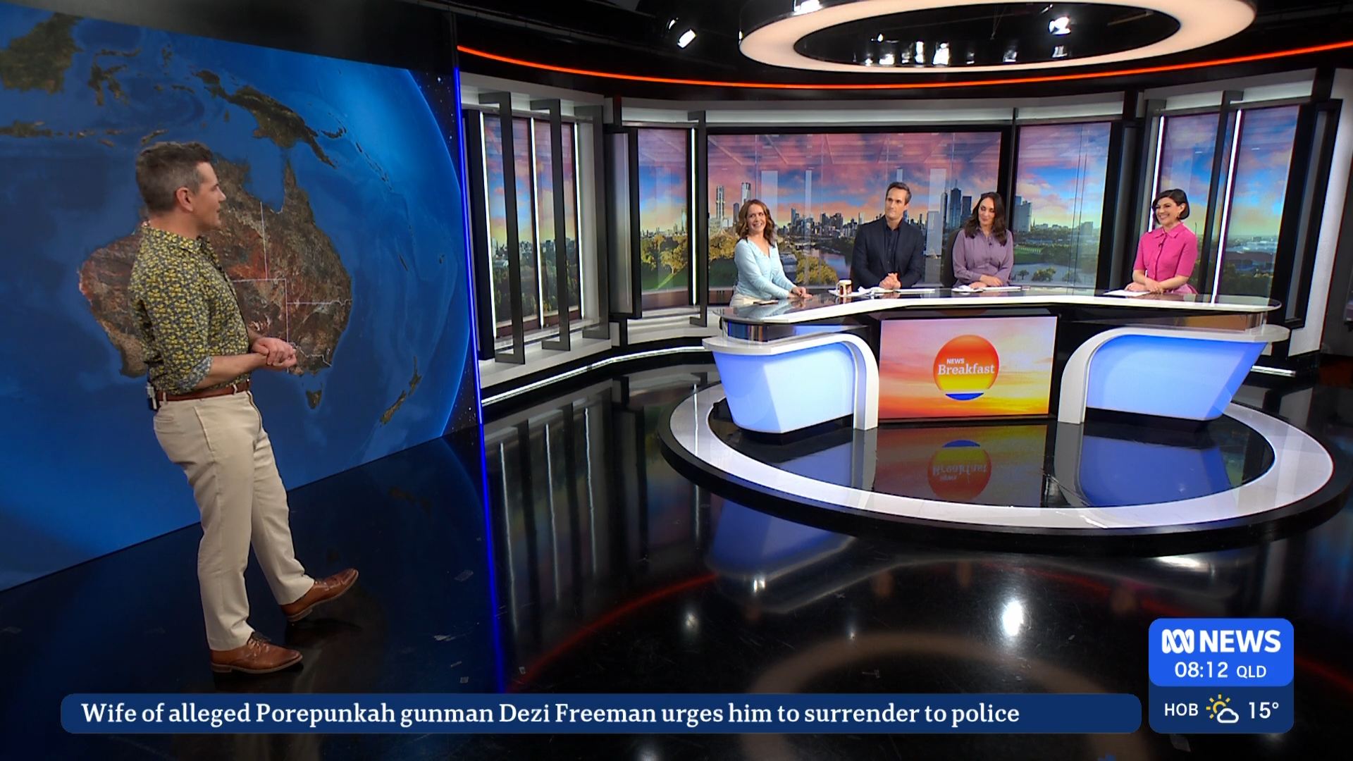 They really need to rein in Nate’s every day is free dress day policy a little. Keep it to dark pants (that actually fit) and shoes, with a shirt you can throw a jacket over if need be. You never know what’s going to happen while you’re on air - it’s rather inappropriate to be getting about in red pants and a bright floral shirt while you’re talking about communities being inundated by fire, flood or cyclone.