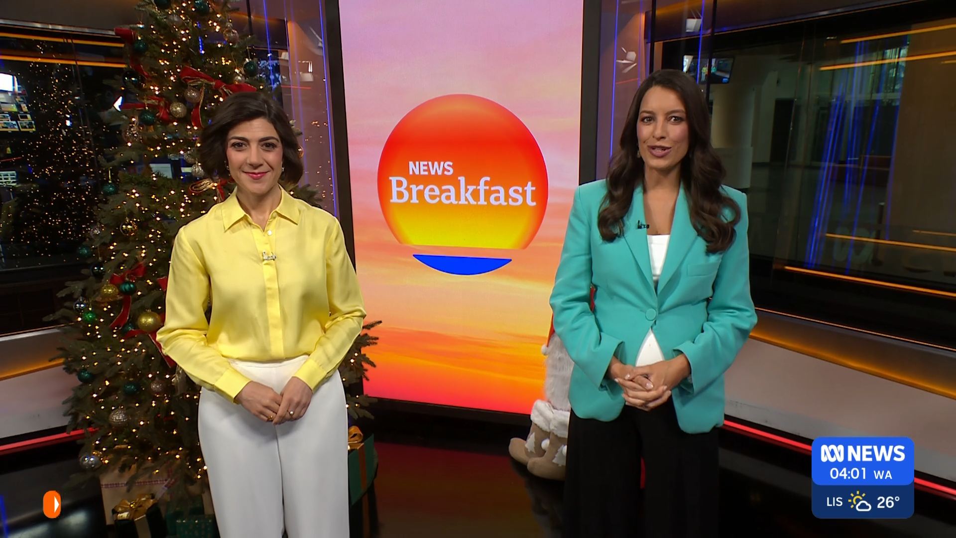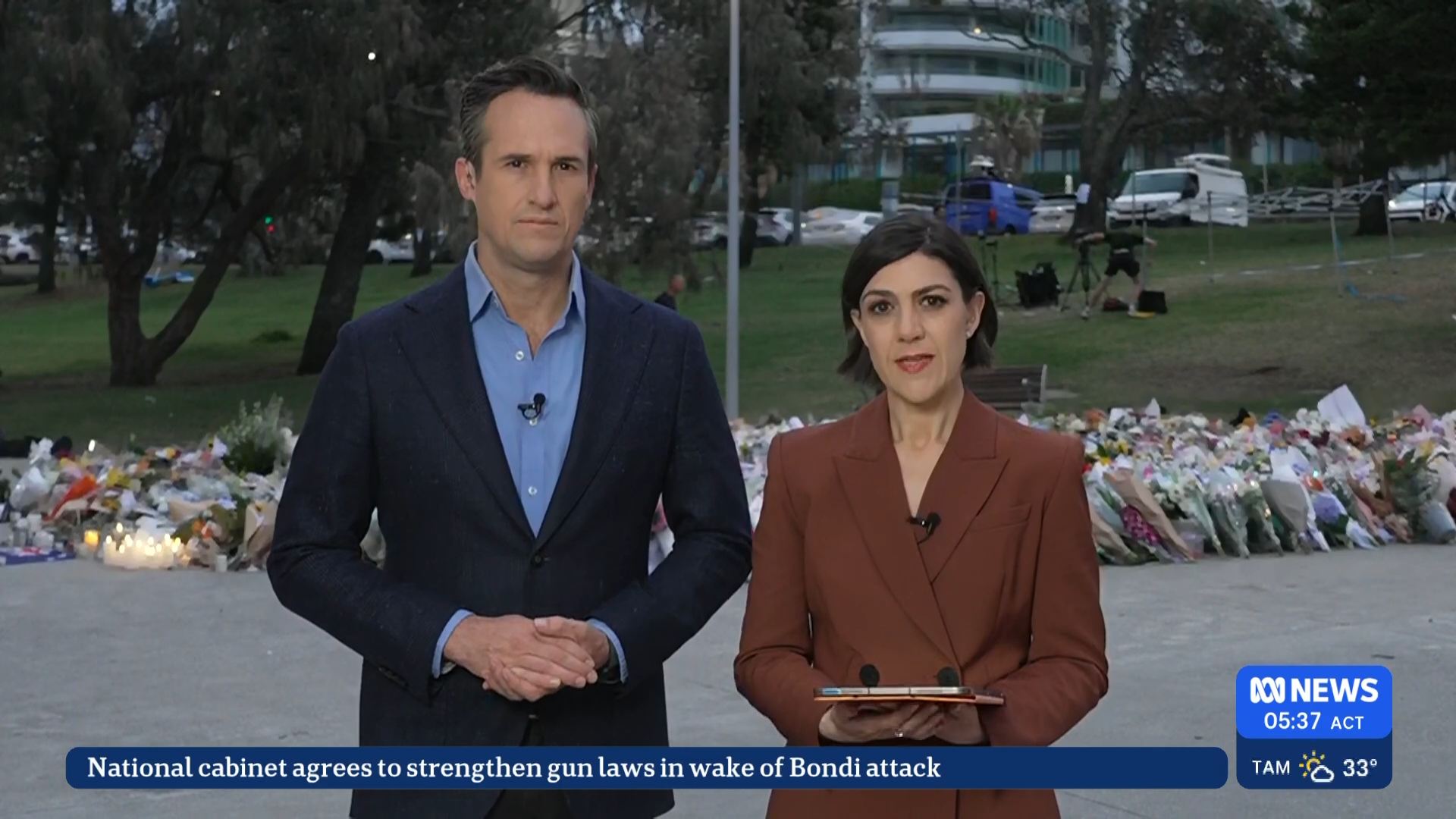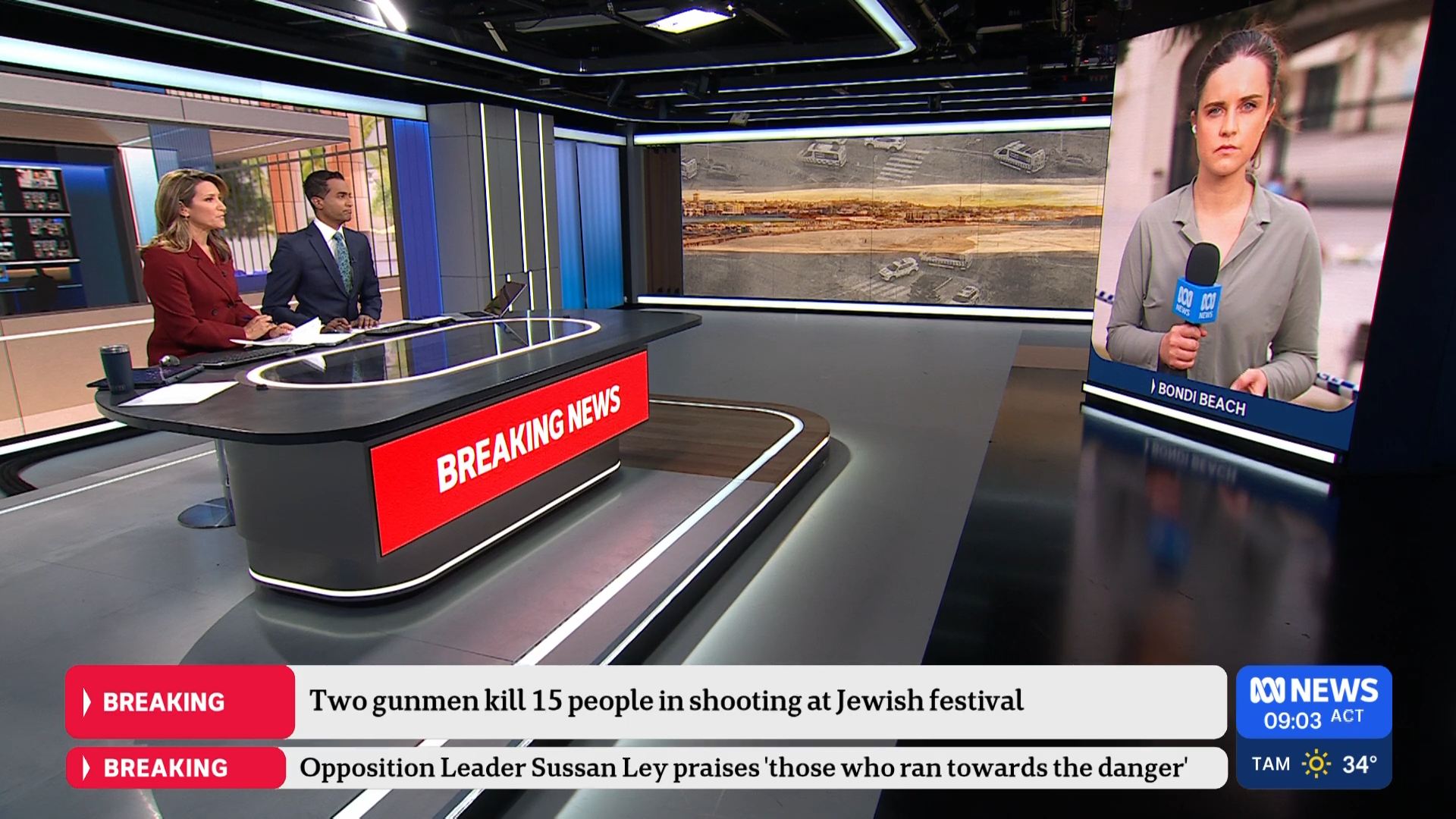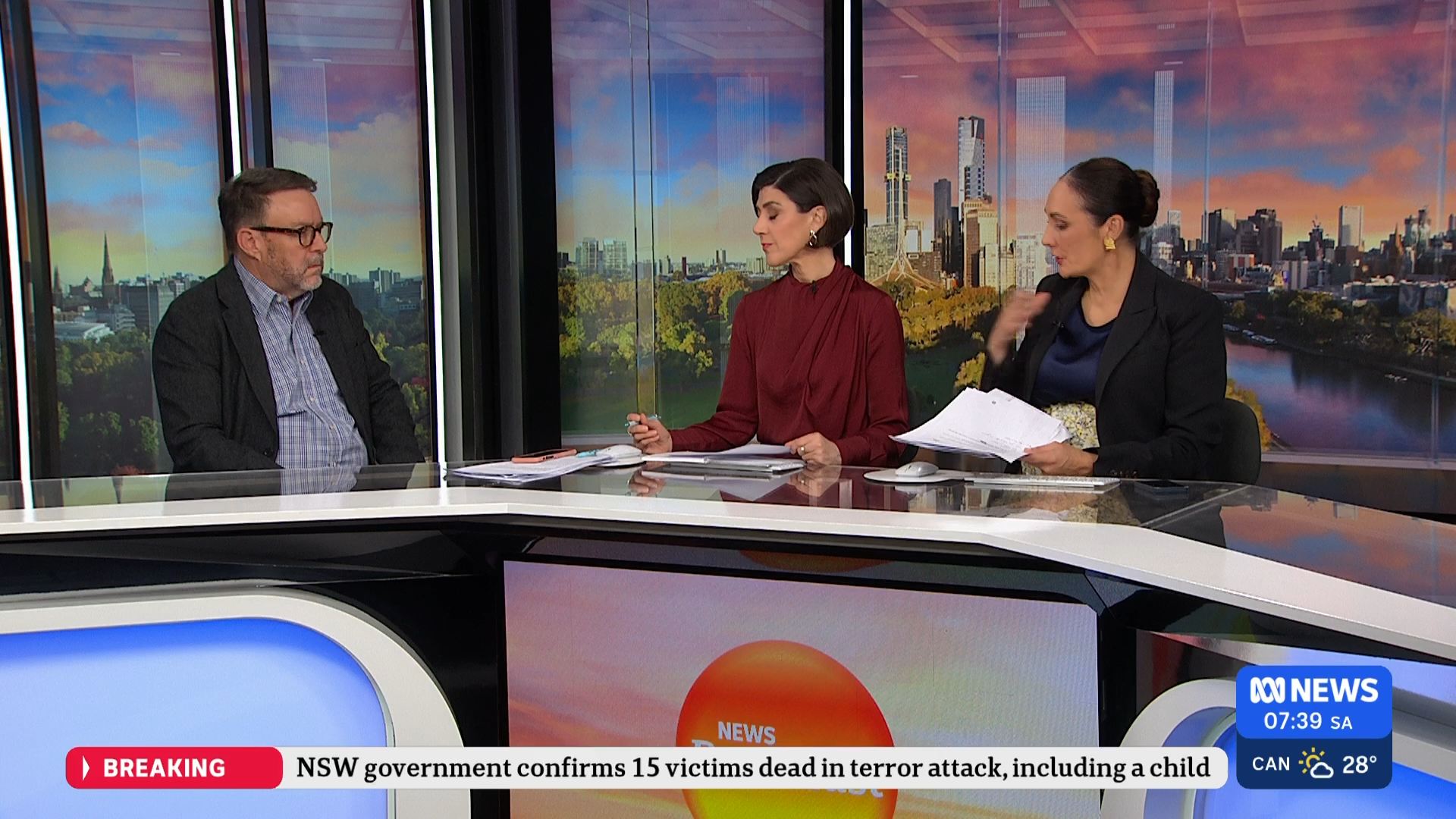 Thursday (18.12.2025): Emma reporting on the terrorist attack live from Bondi, with James and Bridget back in studio. No separate news or sport presenters.