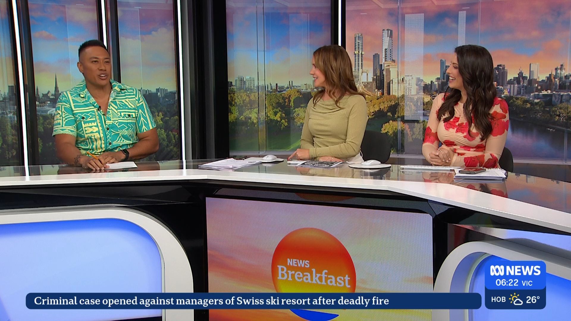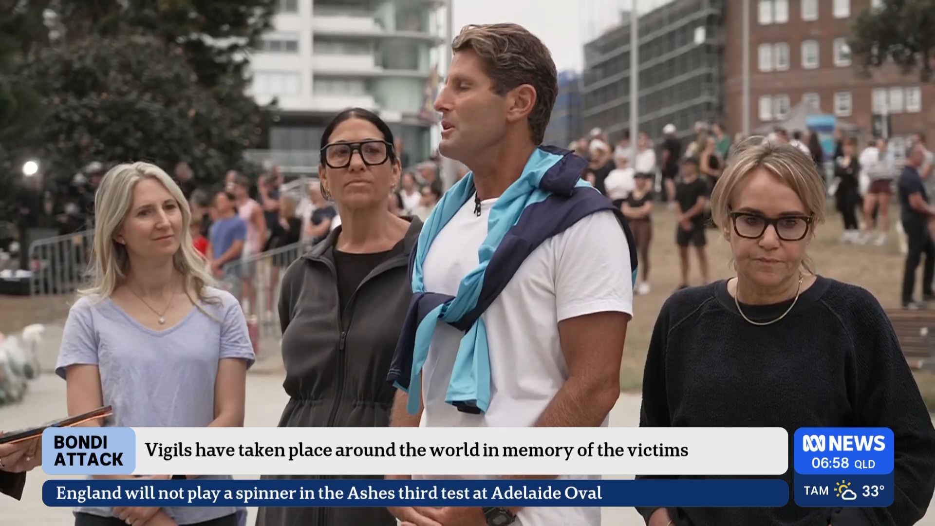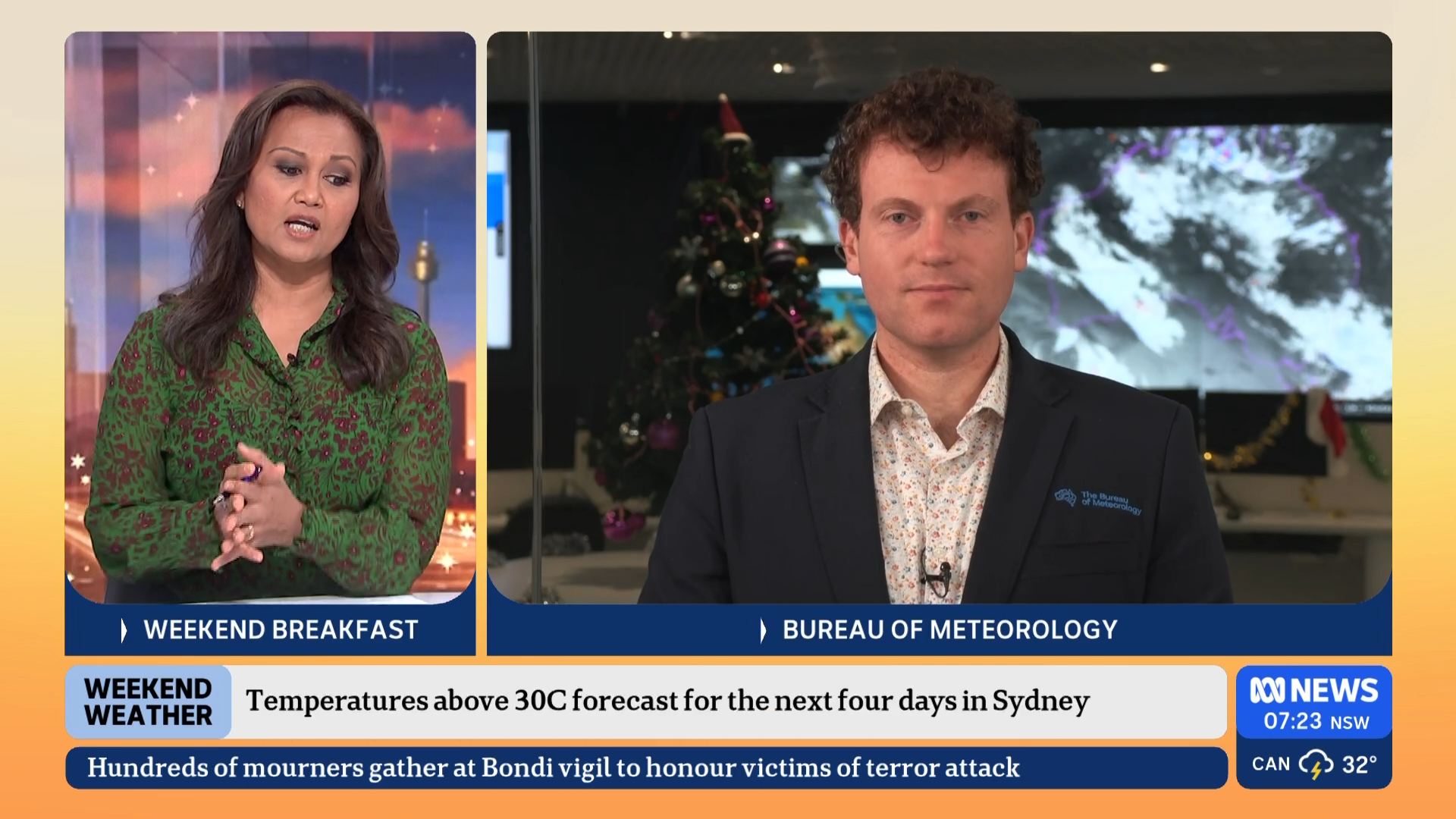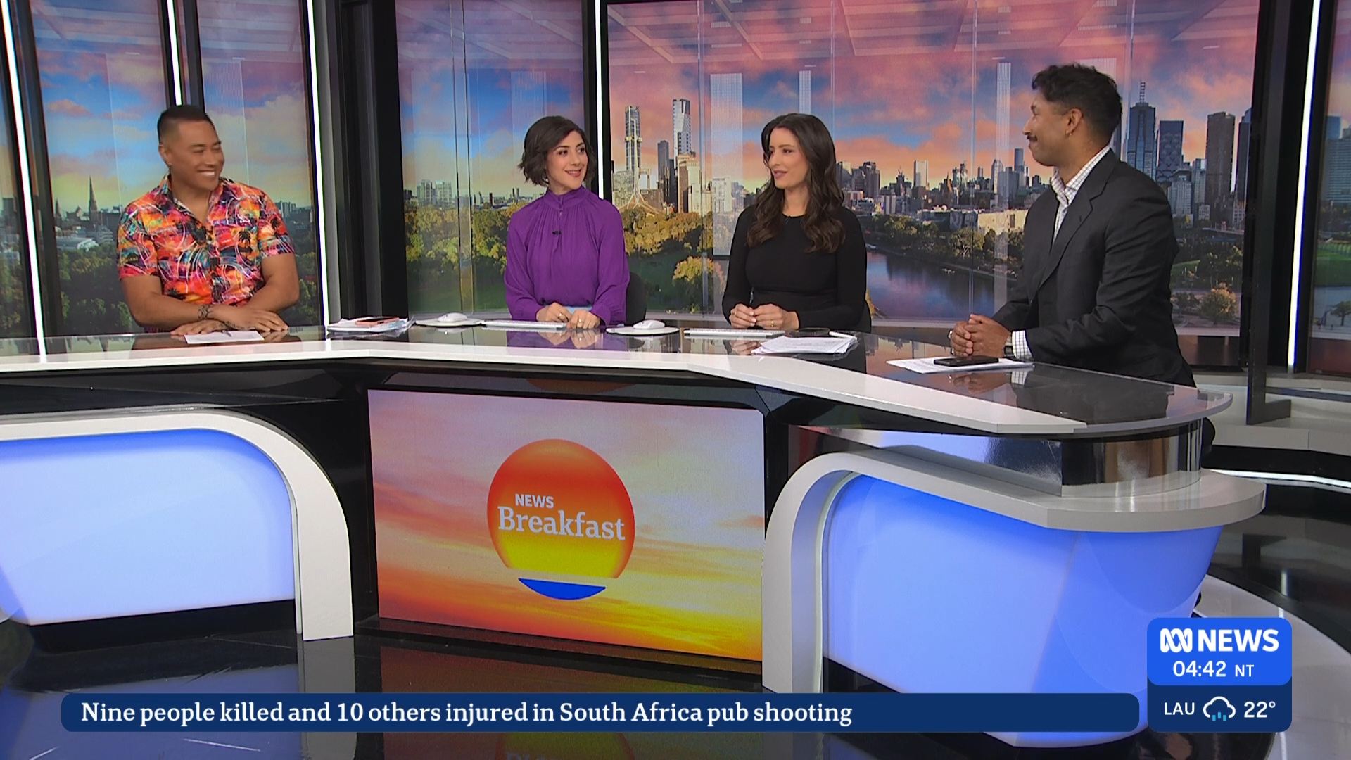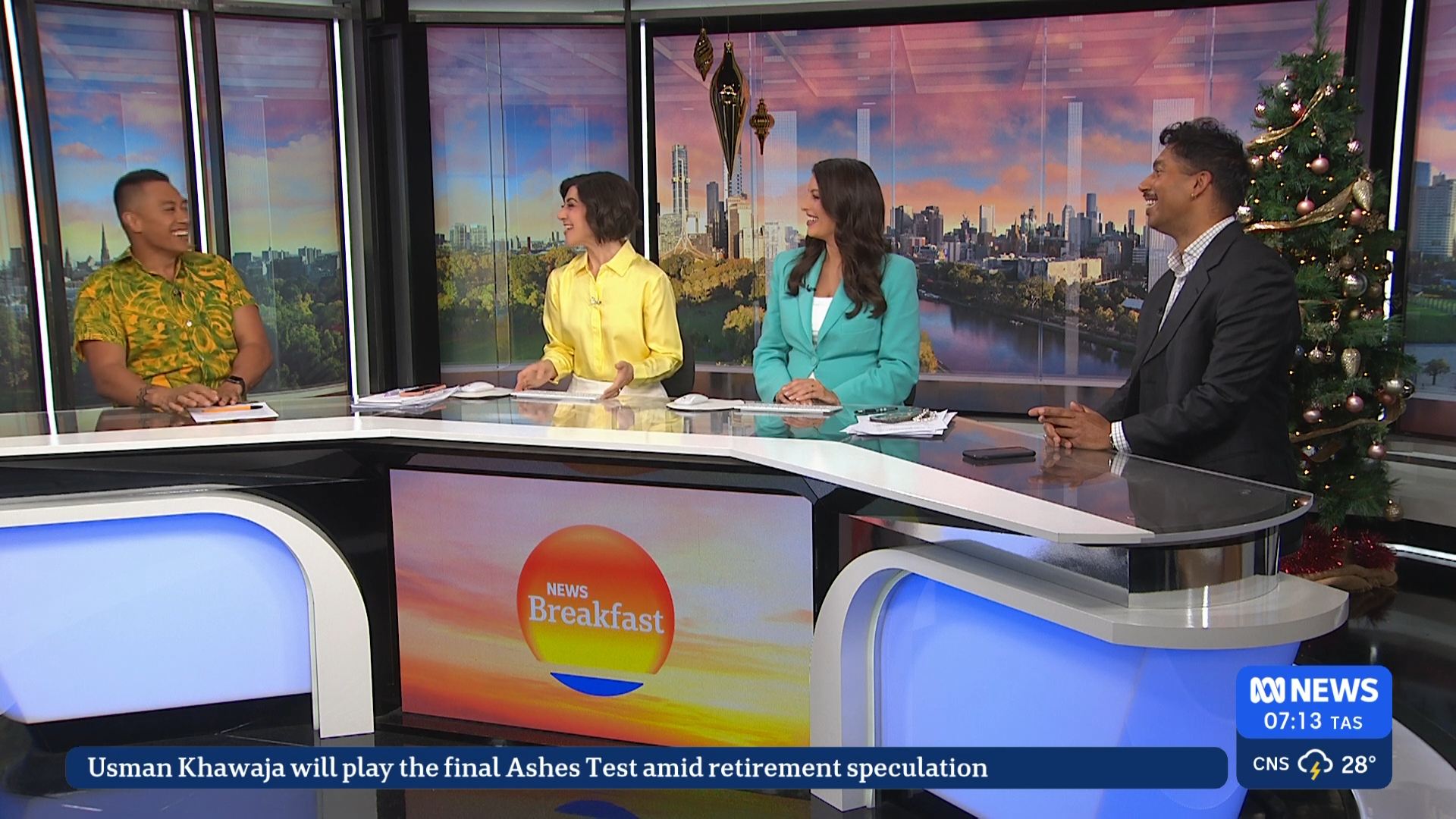 Thursday (18.12.2025): Emma reporting on the terrorist attack live from Bondi, with James and Bridget back in studio. No separate news or sport presenters.