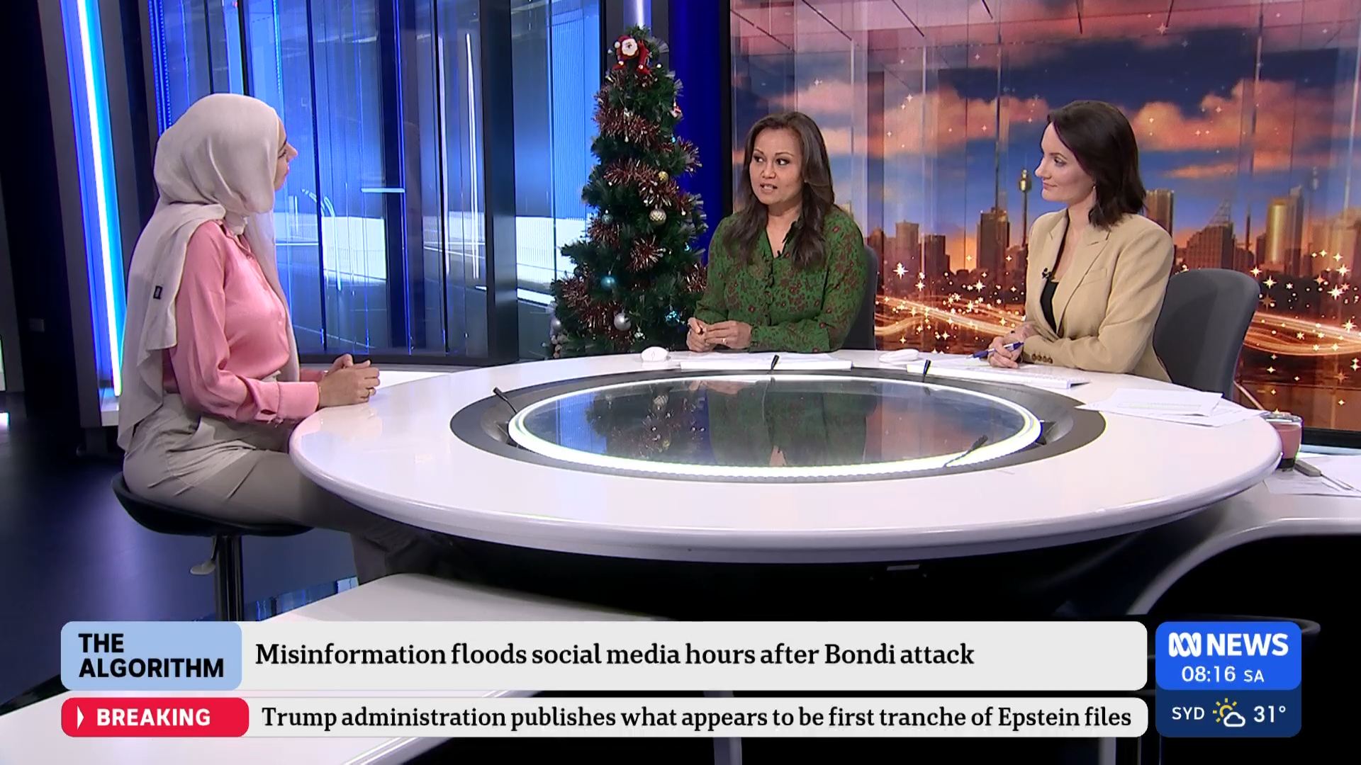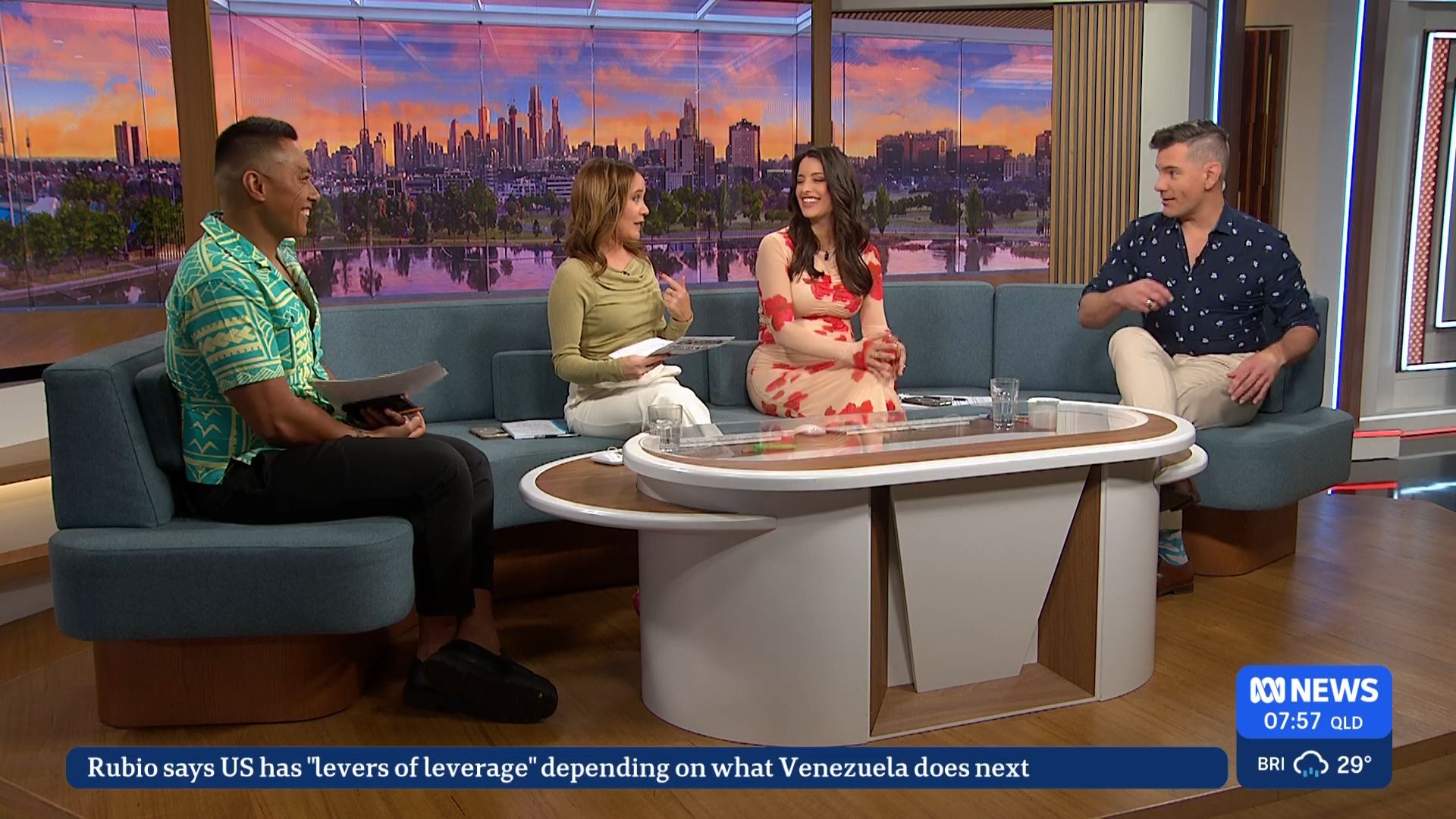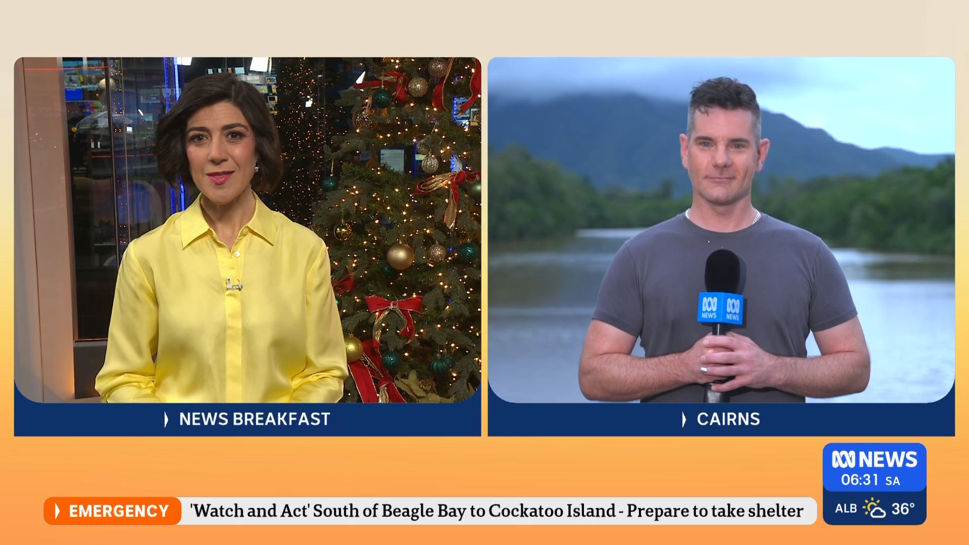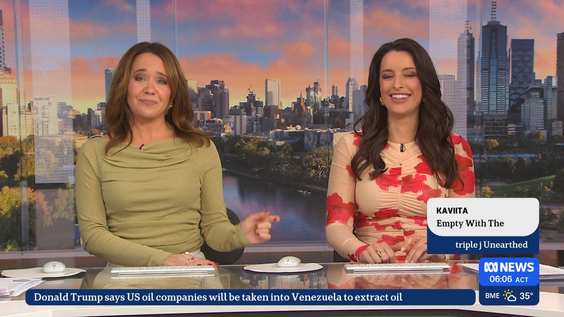 Thursday (18.12.2025): Emma reporting on the terrorist attack live from Bondi, with James and Bridget back in studio. No separate news or sport presenters.