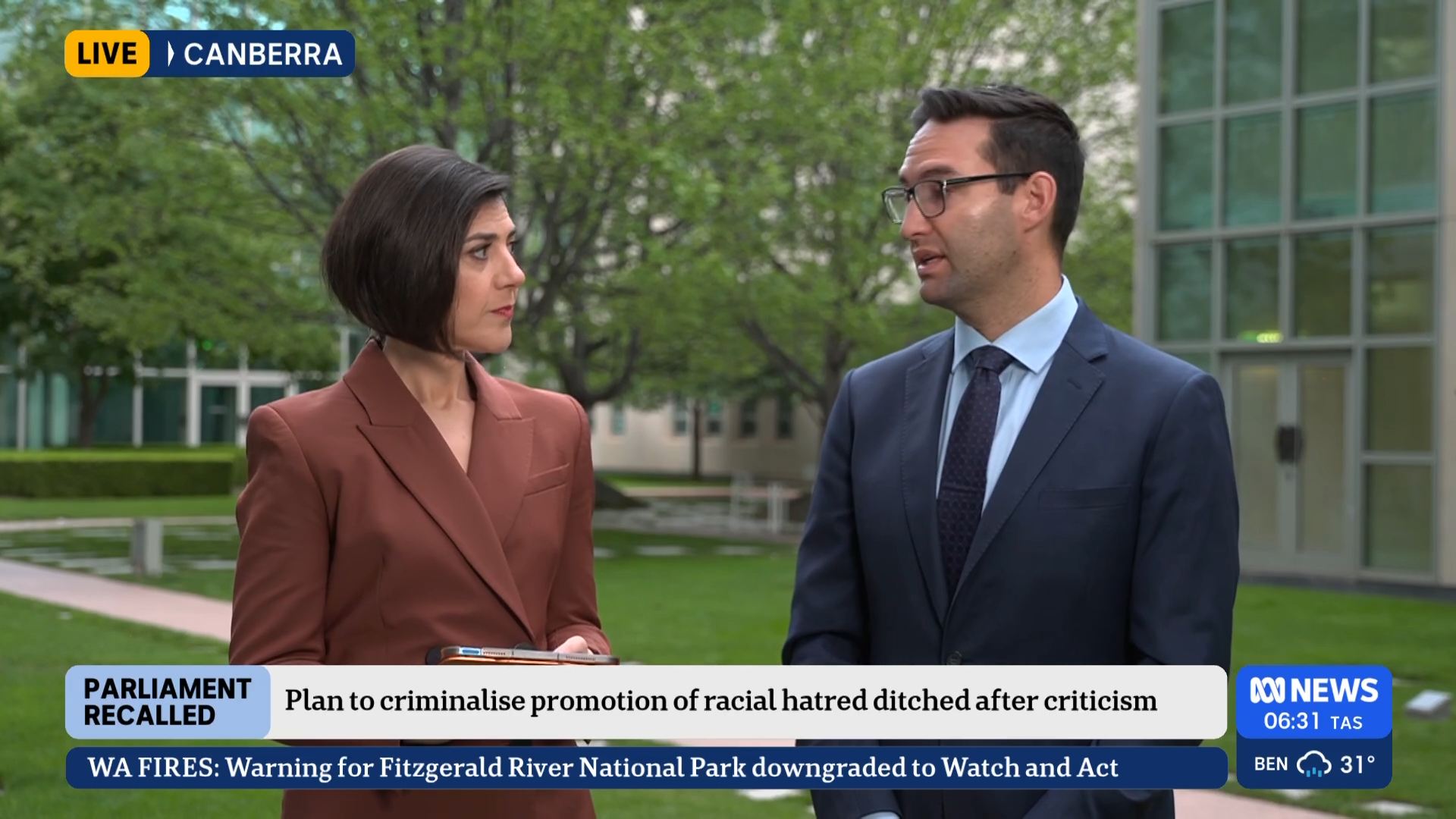 Tuesday (20.01.2026): Emma reporting again from Canberra on the recall of parliament.