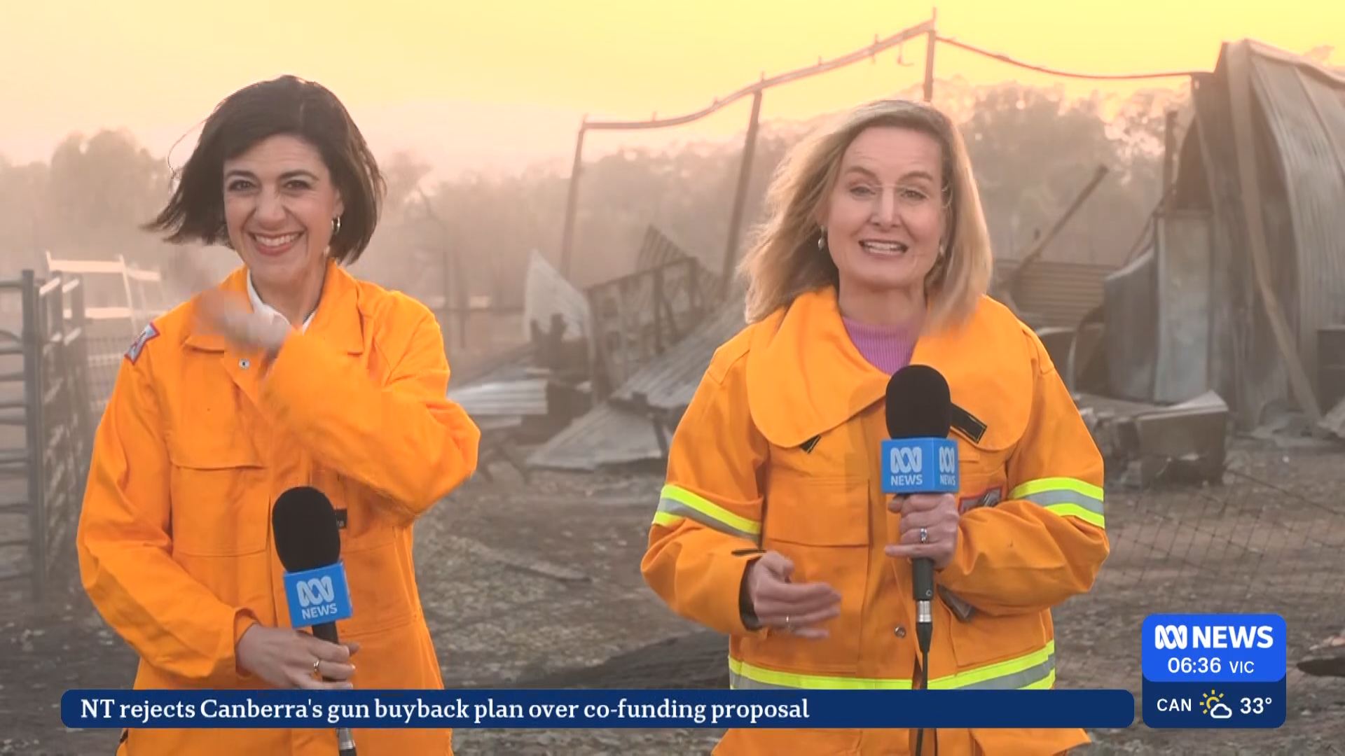 NB live from the fire zone with a dodgy opener - camera took a while to pan to the correct hosting pair.