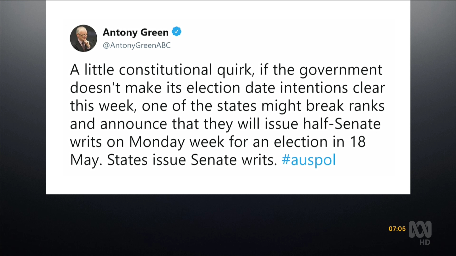 Michael Rowland co-hosting from Canberra tomorrow.