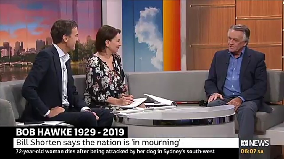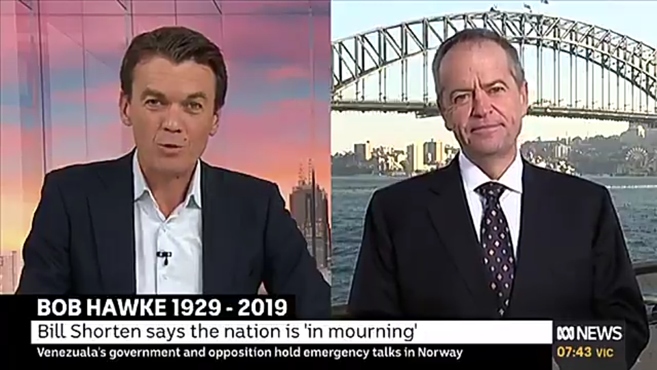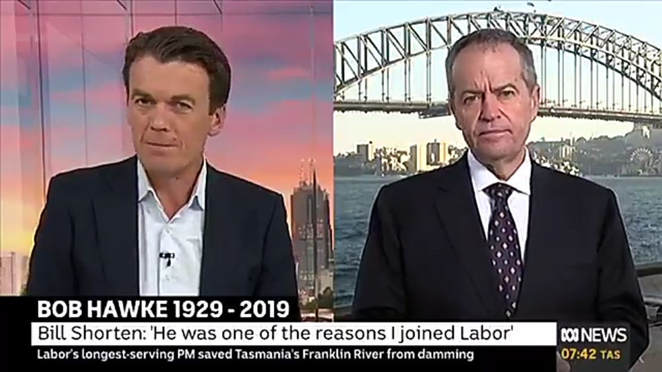 Extended edition for coverage on the death of former Prime Minister Bob Hawke last night. Shorten and Morrison were both interviewed making final pitches to voter’s this morning,and both leaders paid tribute to Bob Hawke .