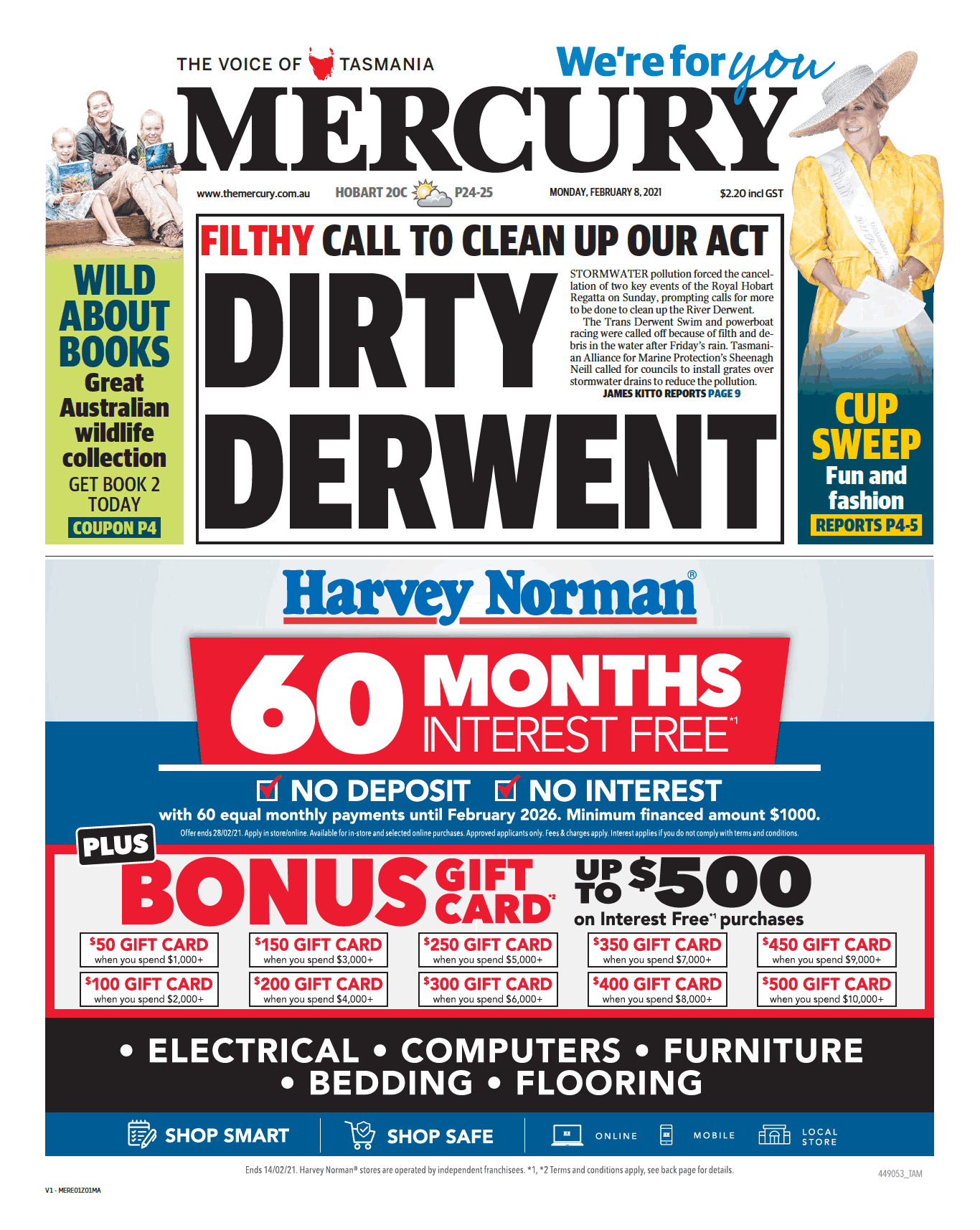 The Harvey Norman ad is bigger than the lead story. Does anyone still collect these cheap books that come with the News Corp papers? The Telegraph, Mercury, Courier Mail, and probably the other News Corp papers, had the same ad on the front page.