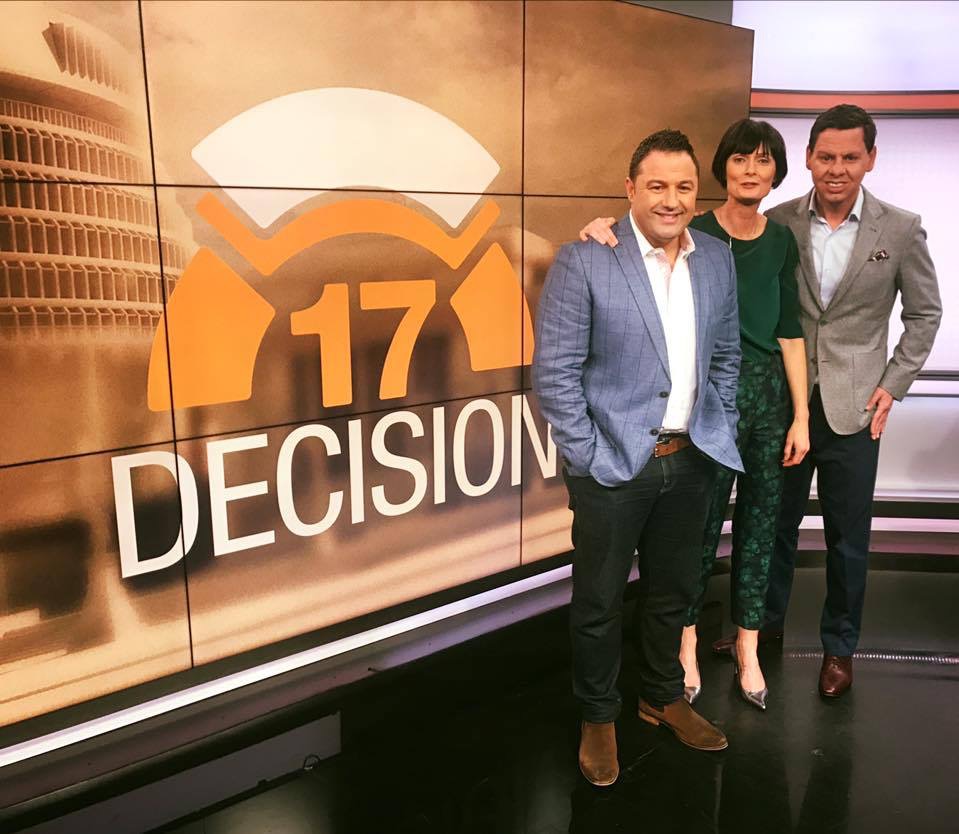 Friday 28/7/2017: Sacha McNeil presenting Newshub Live at 6pm with Tom and Gemma Coombe presenting Newshub Late.