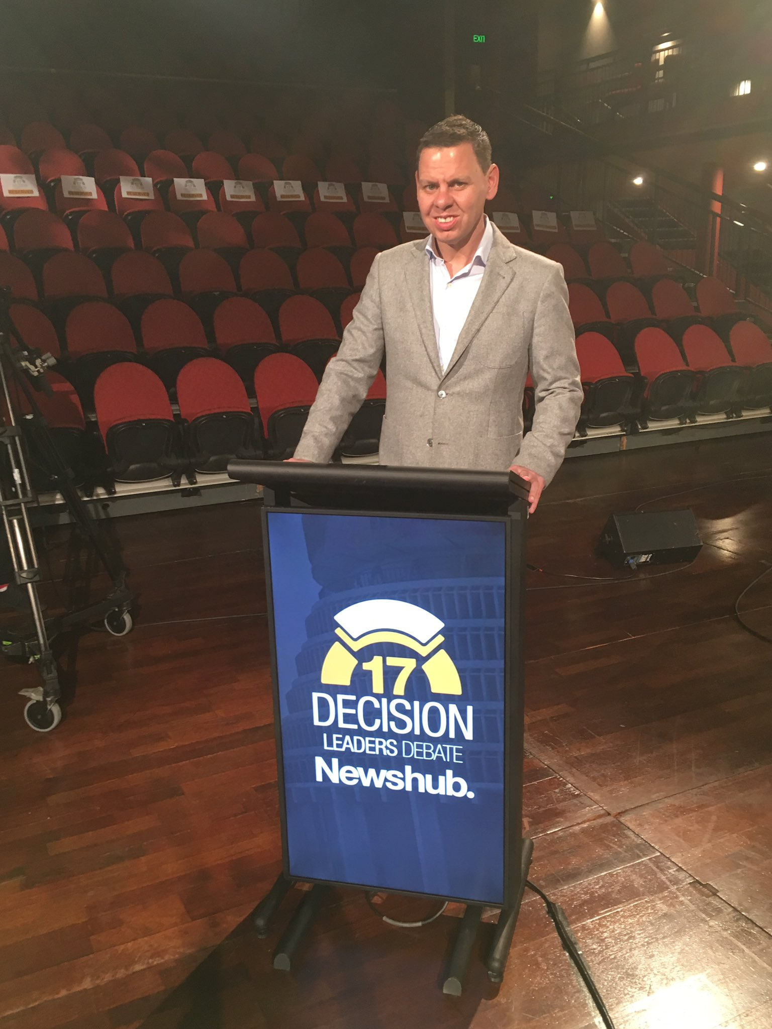 Newshub Political Editor Patrick Gower getting ready for tonight’s Newshub Leaders Debate, LIVE from the Vodafone Events Centre in Auckland. (from Lisa Owen/Twitter)