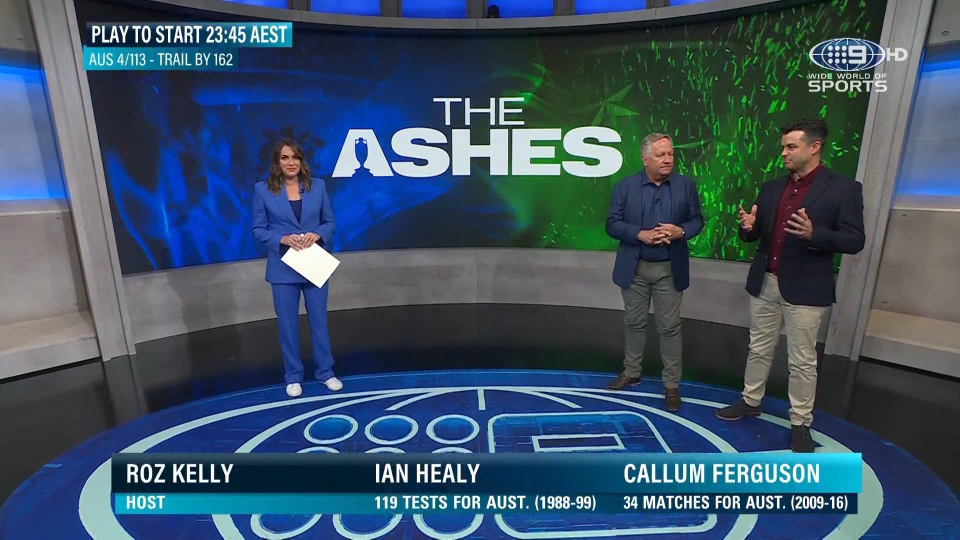 Nine’s commentary team is hosted by Roz Kelly, with expert comments from former Australian captain Mark Taylor, Ashes winner Ian Healy and former international Callum Ferguson. Taylor will be joined on the ground by Louise Ransome, with 9News reporter Sam Djodan filing from London.