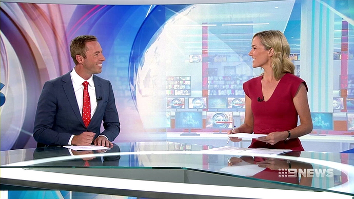 As suggested, some caps of tonight’s Nine News Sydney. The first bulletin for Georgie Gardner (and Tim Gilbert too I think, obviously Belinda’s first from this set was last Friday) in the new set: