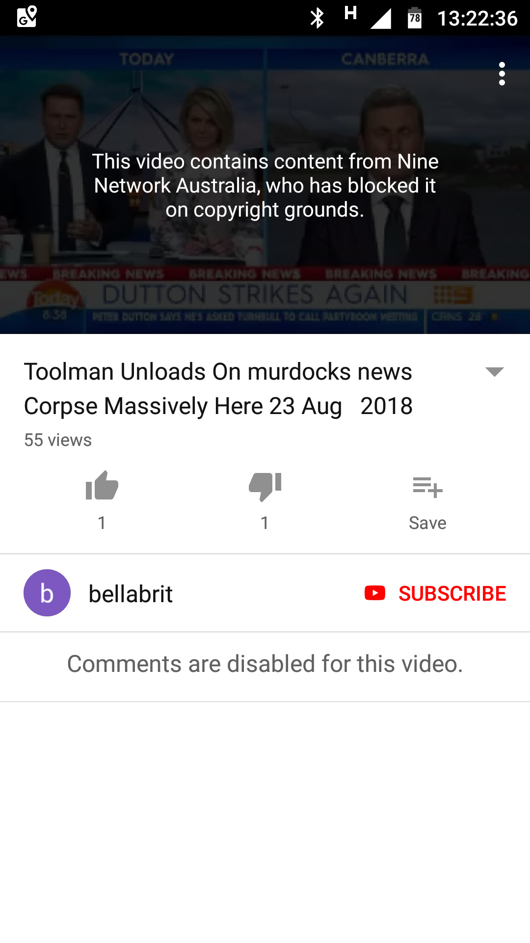 The YouTube upload might’ve been restored, but I still wouldn’t be overly surprised if senior network management had quite a talking to Chris Uhlmann over that rant - specifically about how Nine needs to keep outlets like The Daily Telegraph, 2GB and Sky News reasonably happy for various co-operative purposes.