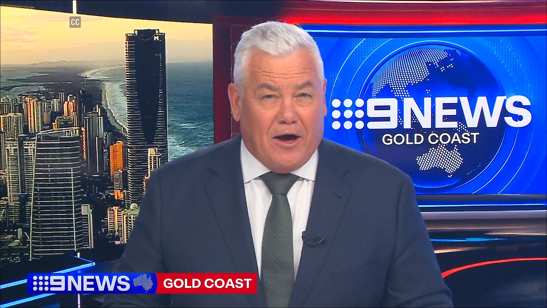 Brisbane opening without the usual wide shot of the desk, instead zooming in to Andrew, the solo presenter using a headline caption.