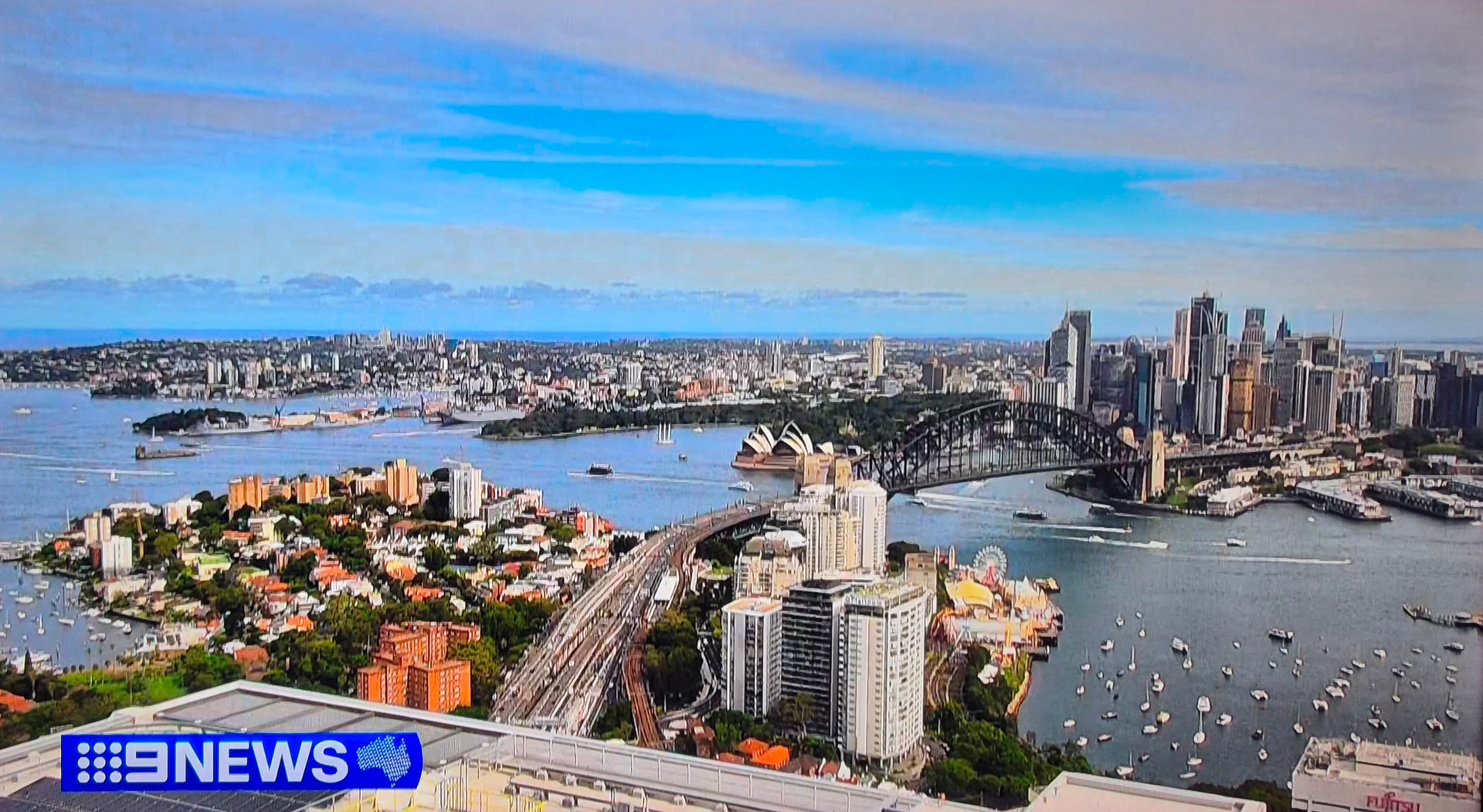 the camera pointed on the western side of Sydney harbour for a short period on the afternoon news