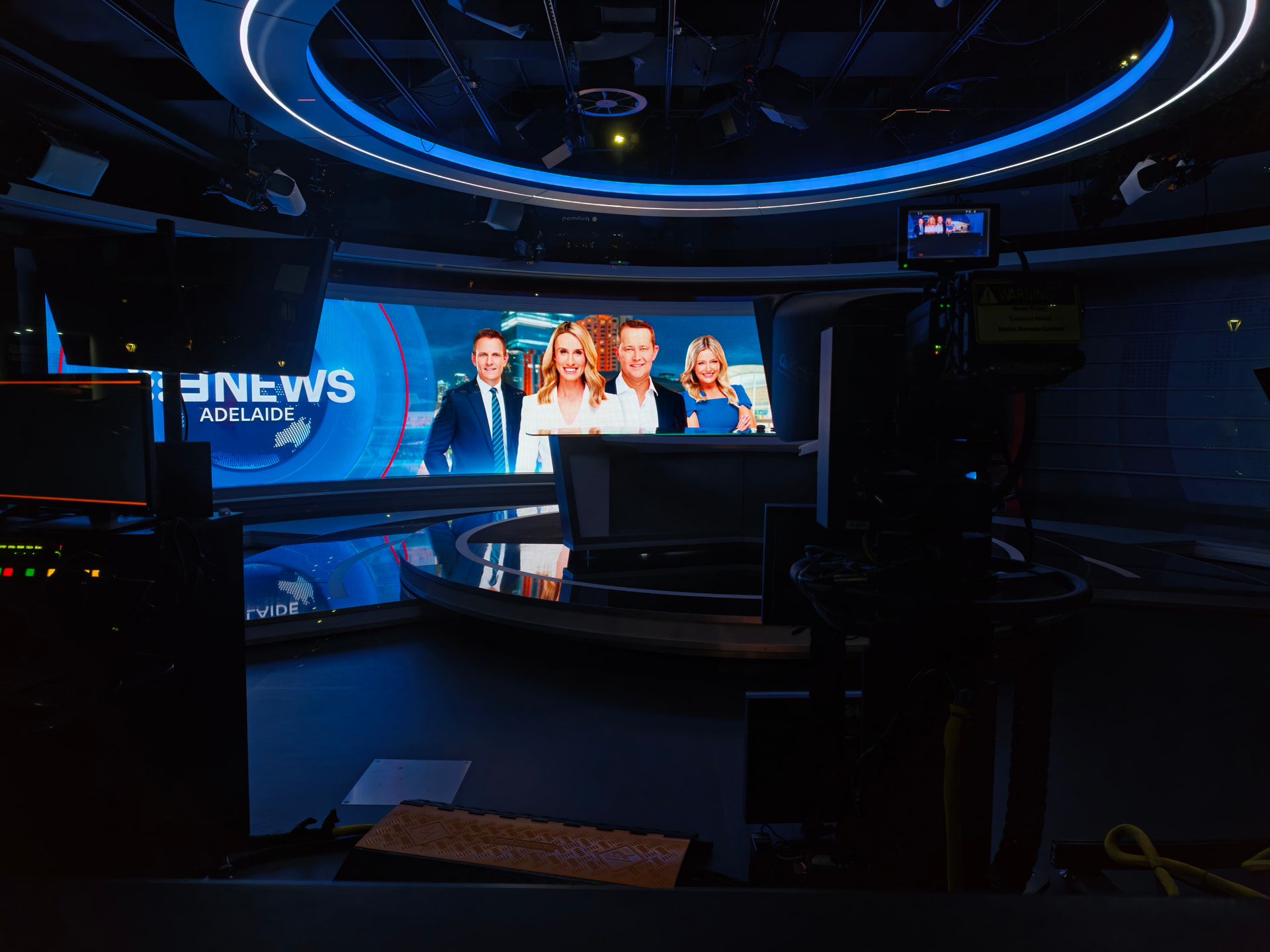 Walked past the 9 News Adelaide studio this evening. Fascinating seeing how small the studio actually is. A very casual Will McDonald in the new weekend team picture.