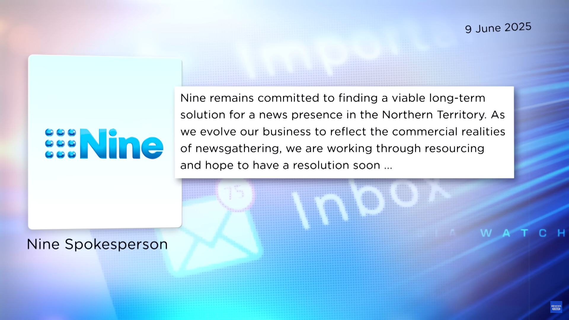 Nine remains committed to finding a long-term solution for a news presence in the Northern Territory. | Nine Spokesperson