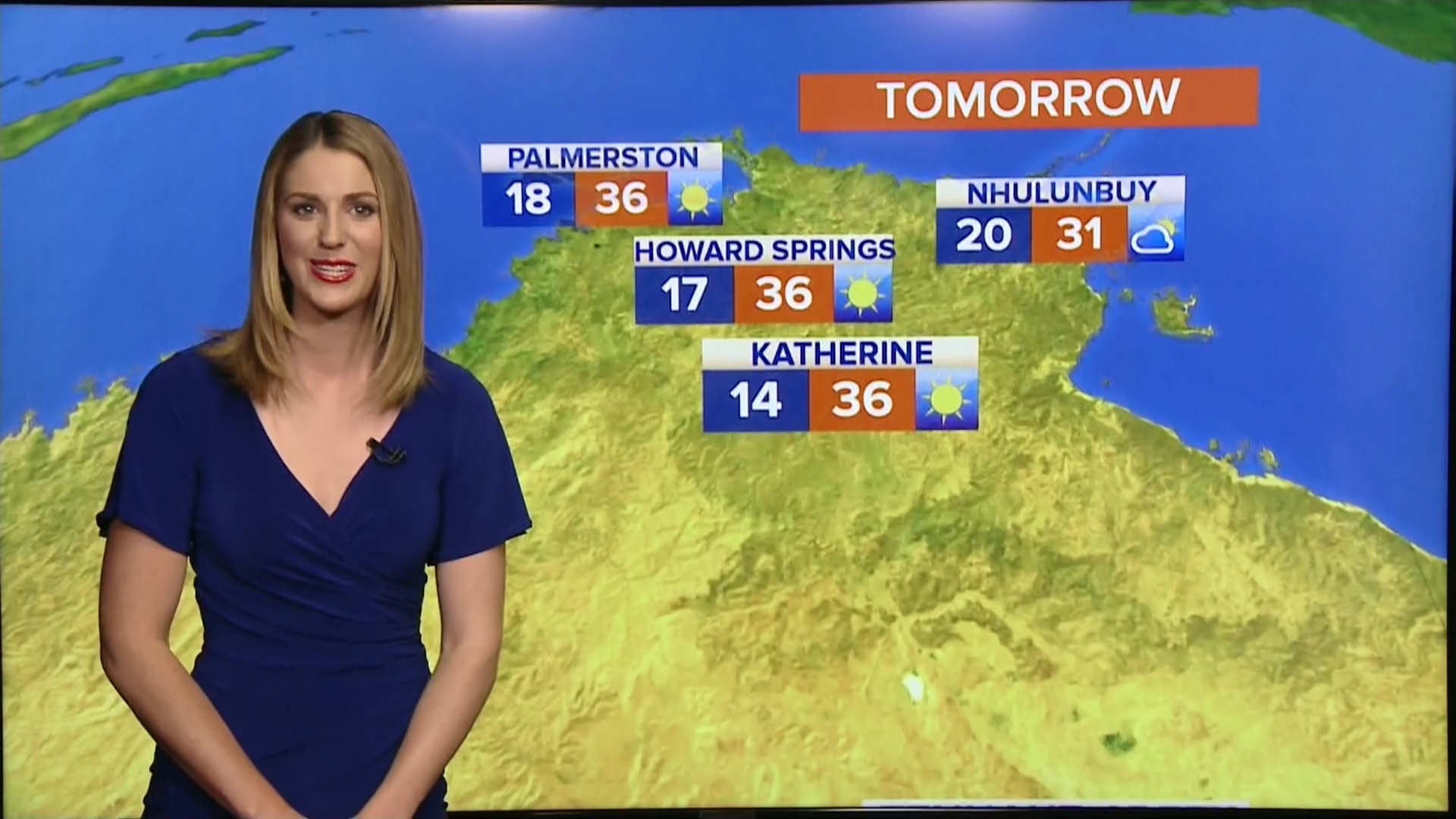 Sam presenting night updates - they used to do Darwin and Rural in the weather super, now only Darwin.