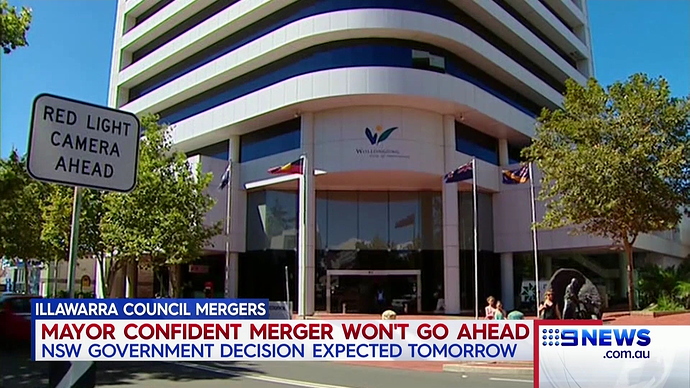 18:09 and Vanessa read the Illawarra council mergers bit on 9News Canberra, then a Canberra story.