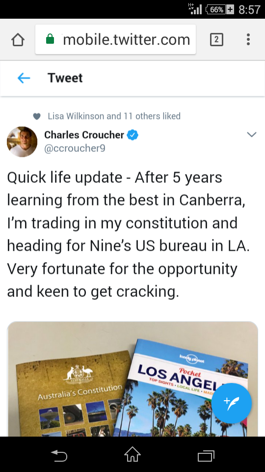 But I suppose itâs also possible that Nine will now have three reporters based in the LA bureau, weâll just have to wait and see what happensâŚ