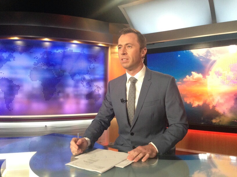 Clint Stanaway presenting Saturday First At Five bulletin.