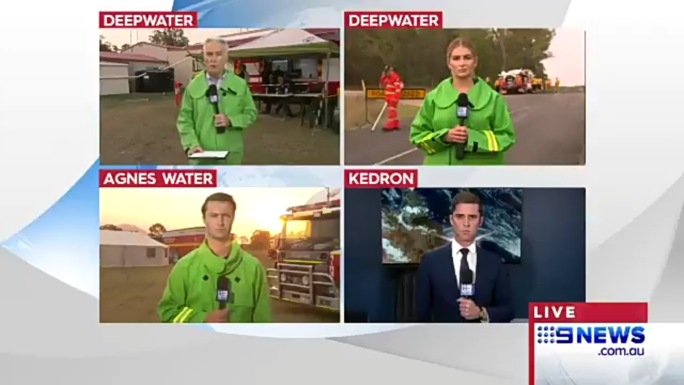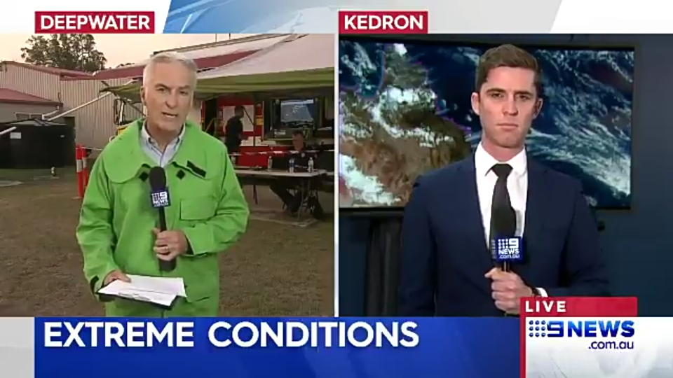 Andrew Lofthouse appearing on the Sydney bulletin in a clumsy live cross from the Queensland fires.