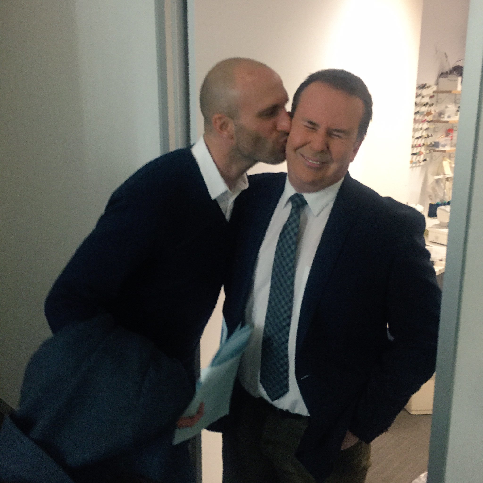 Tony Jones finally got a kiss from one of the Juddâs,Becâs hubby Chris planted a cheeky kiss on himâŚTony enjoyed it !