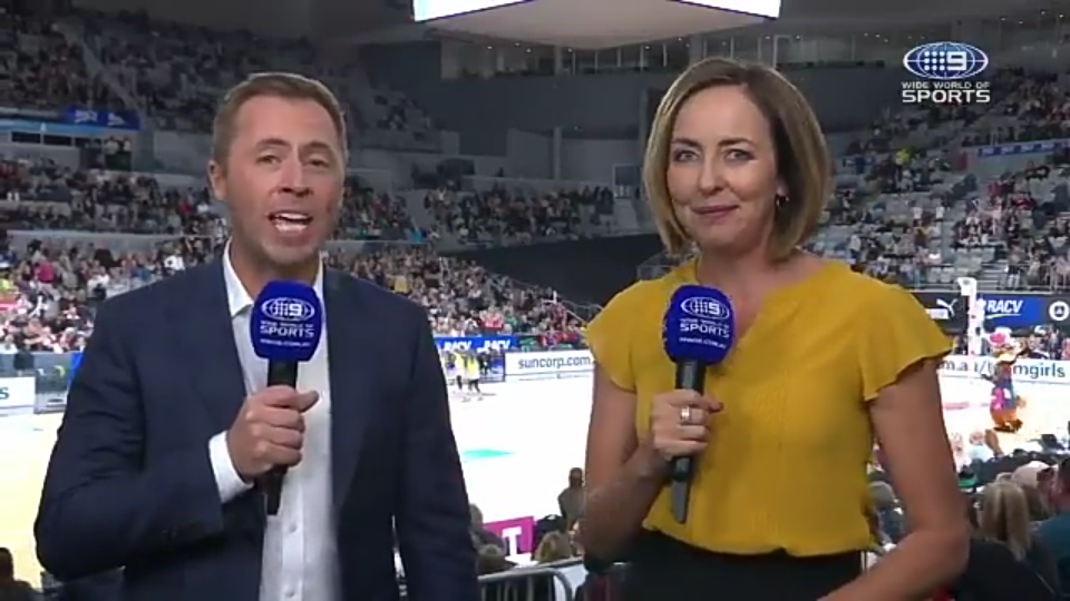 Peter Overton caught out here trying to have a sip of water when Cameron crossed back to him earlier than expected