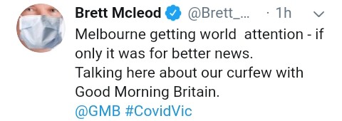 Melbourne reporter Brett McLeod has appeared on Good Morning Britain to talk about the current situation in Melbourne.