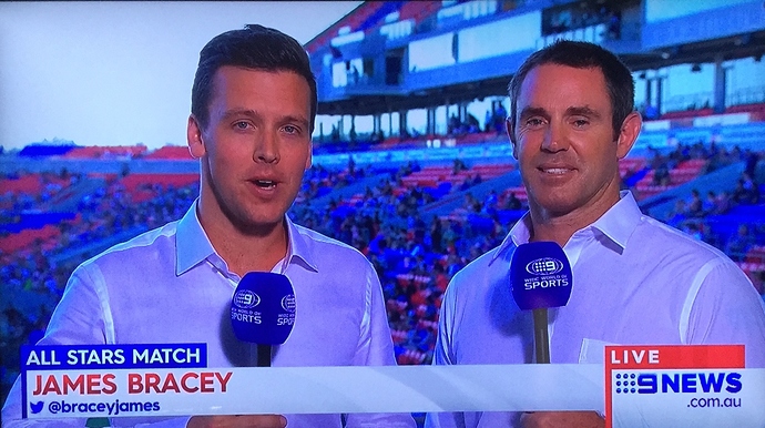 James Bracey made his first appearance on Nine News Sydney tonight, covering the NRL All Stars game from Newcastle (sans jacket due to the heatwave conditions).