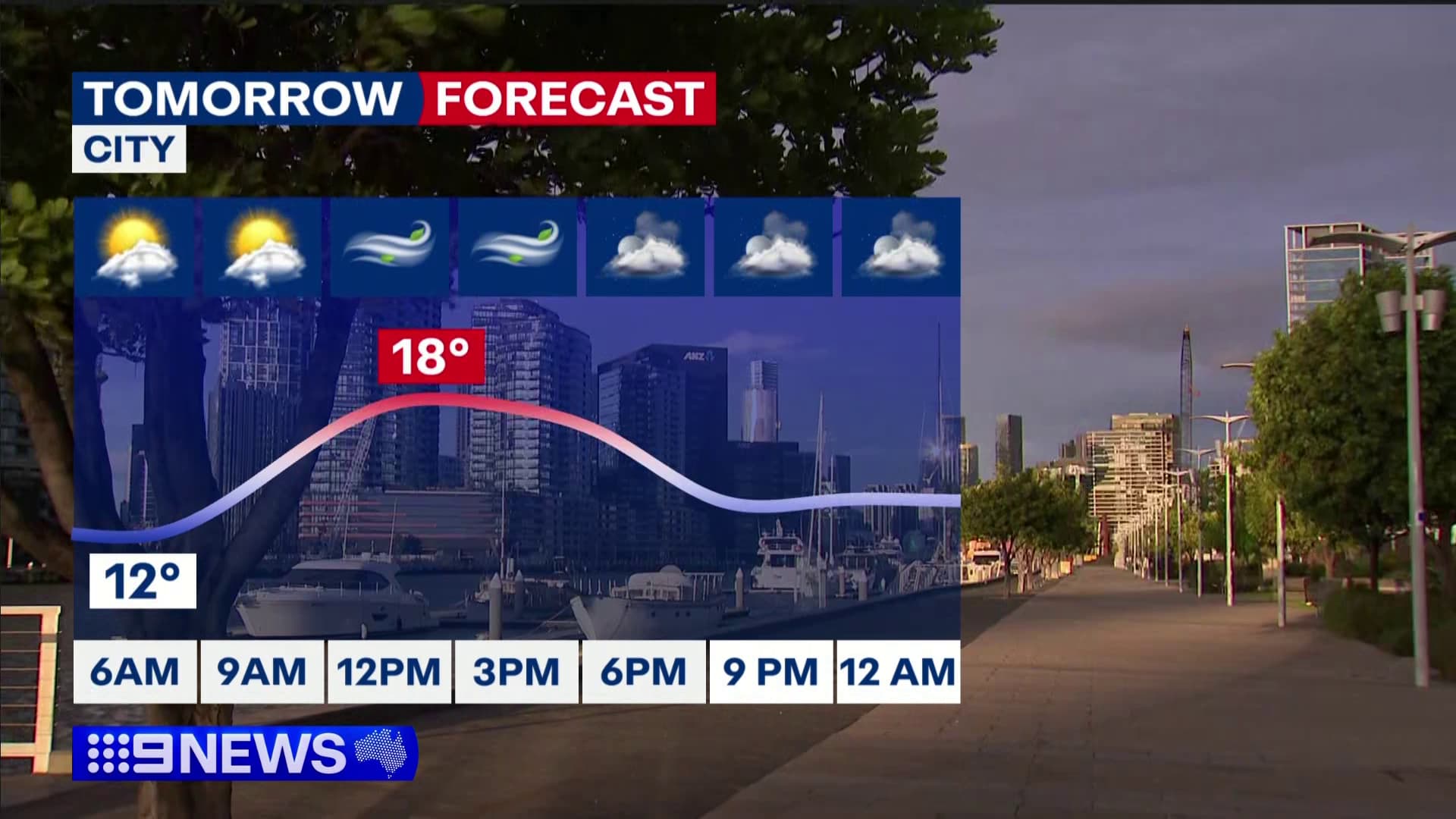 Melbourne uses the 7-day forecast on the videowall, and then shows the next-day weather breakdown as a fullscreen