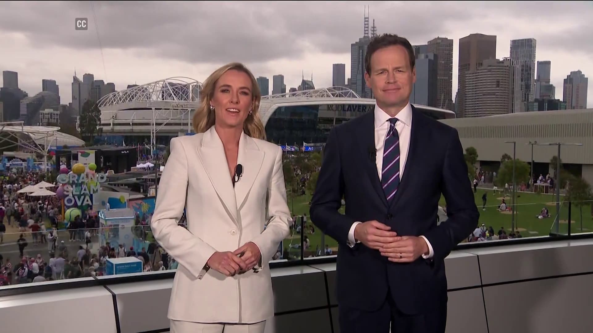 To me the ‘Footy News’ set looks fake / computer generated. Assume it’s recorded from the TOSS. Maybe that screen on the right is just edited on to the backdrop.