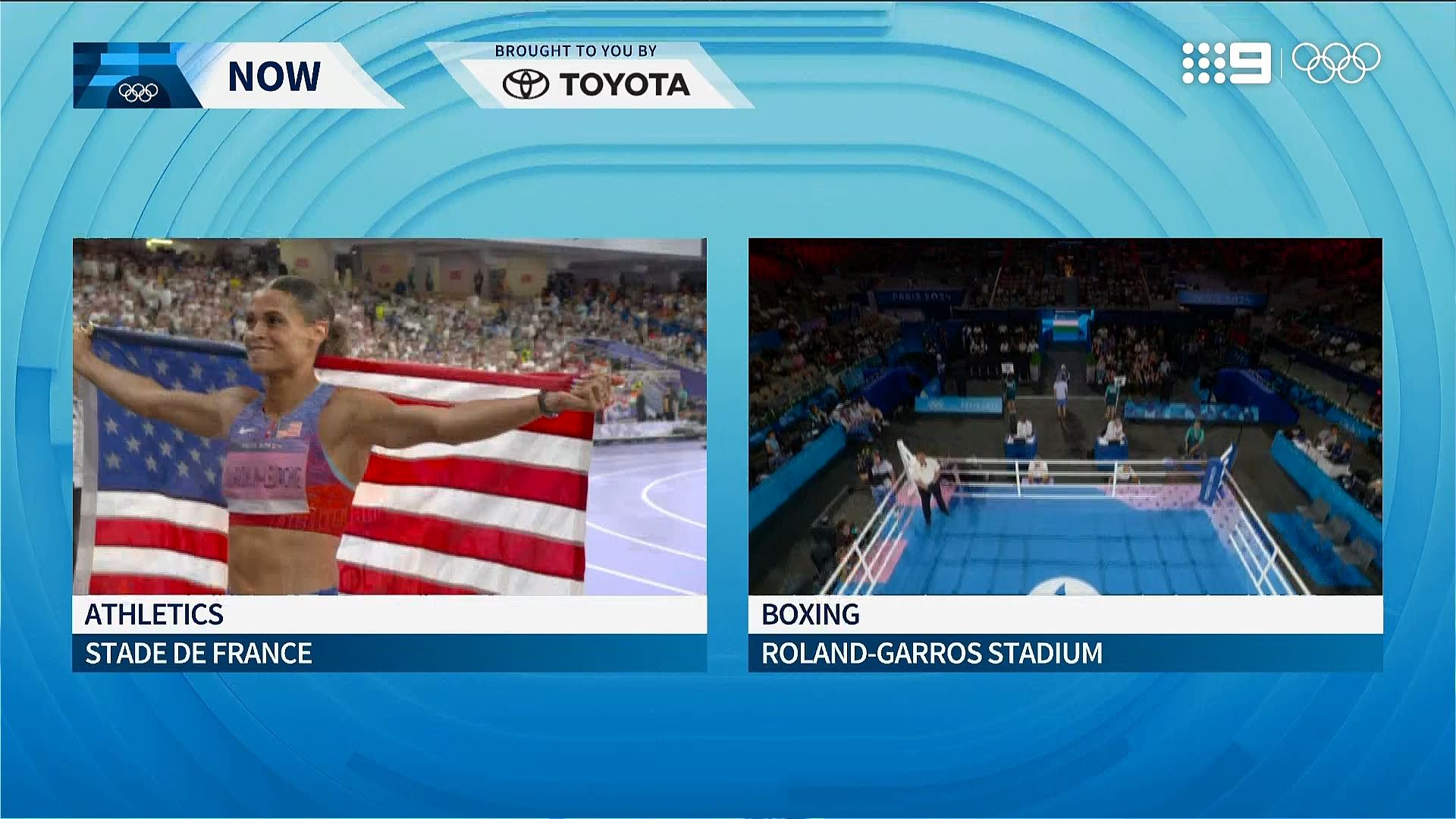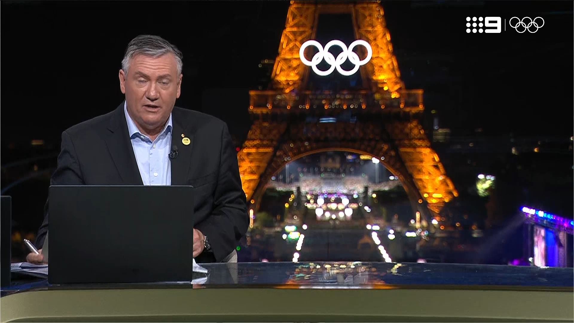 Also a number of medal ceremonies were shown; Saw a shared screen ad. Mostly athletics, some boxing. Eddie ended the night with a cross to Nine News before Today in Paris started.