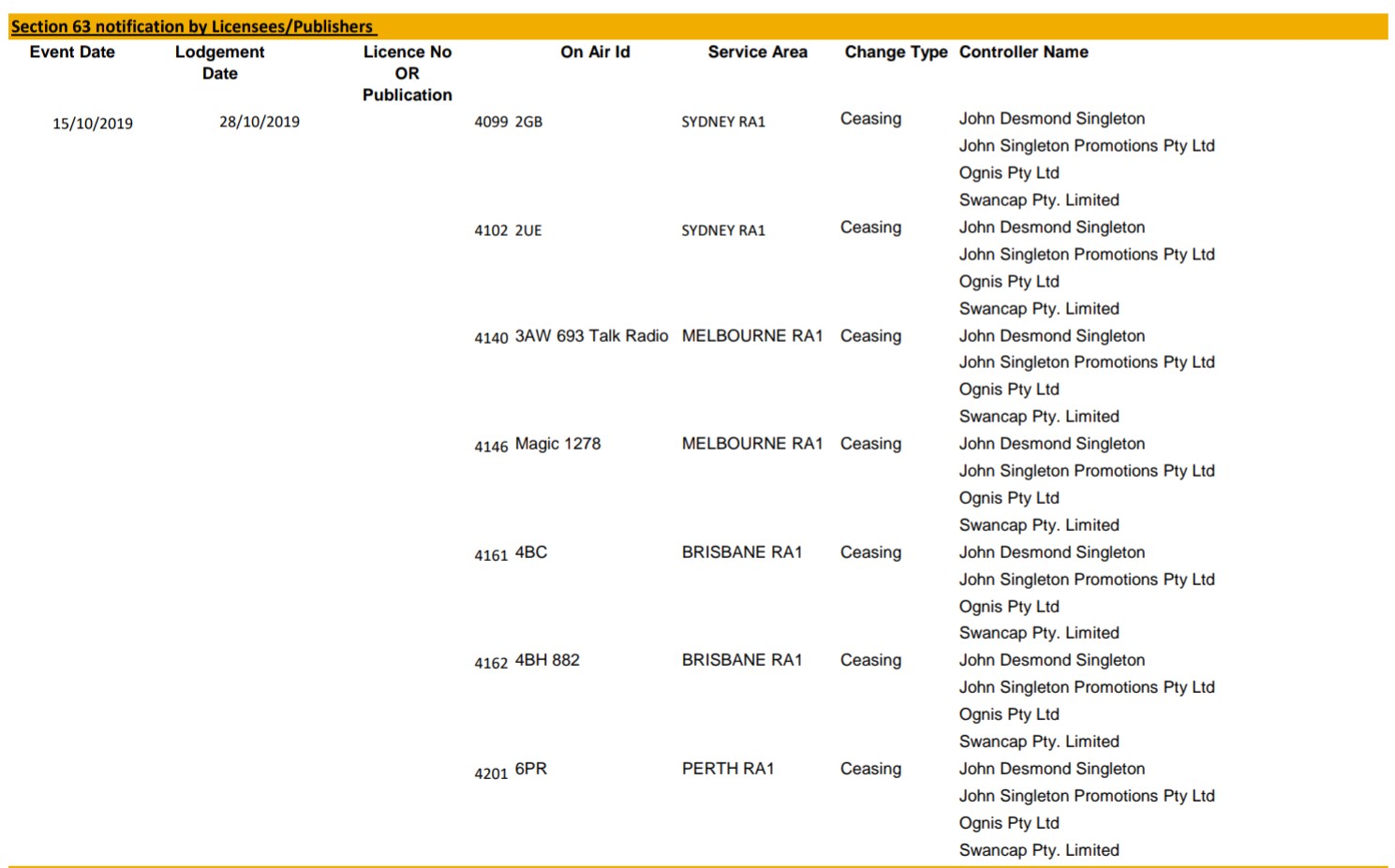 Very funny. Could be due to the licensees not updating (not required to) the ACMA of their on air ID?