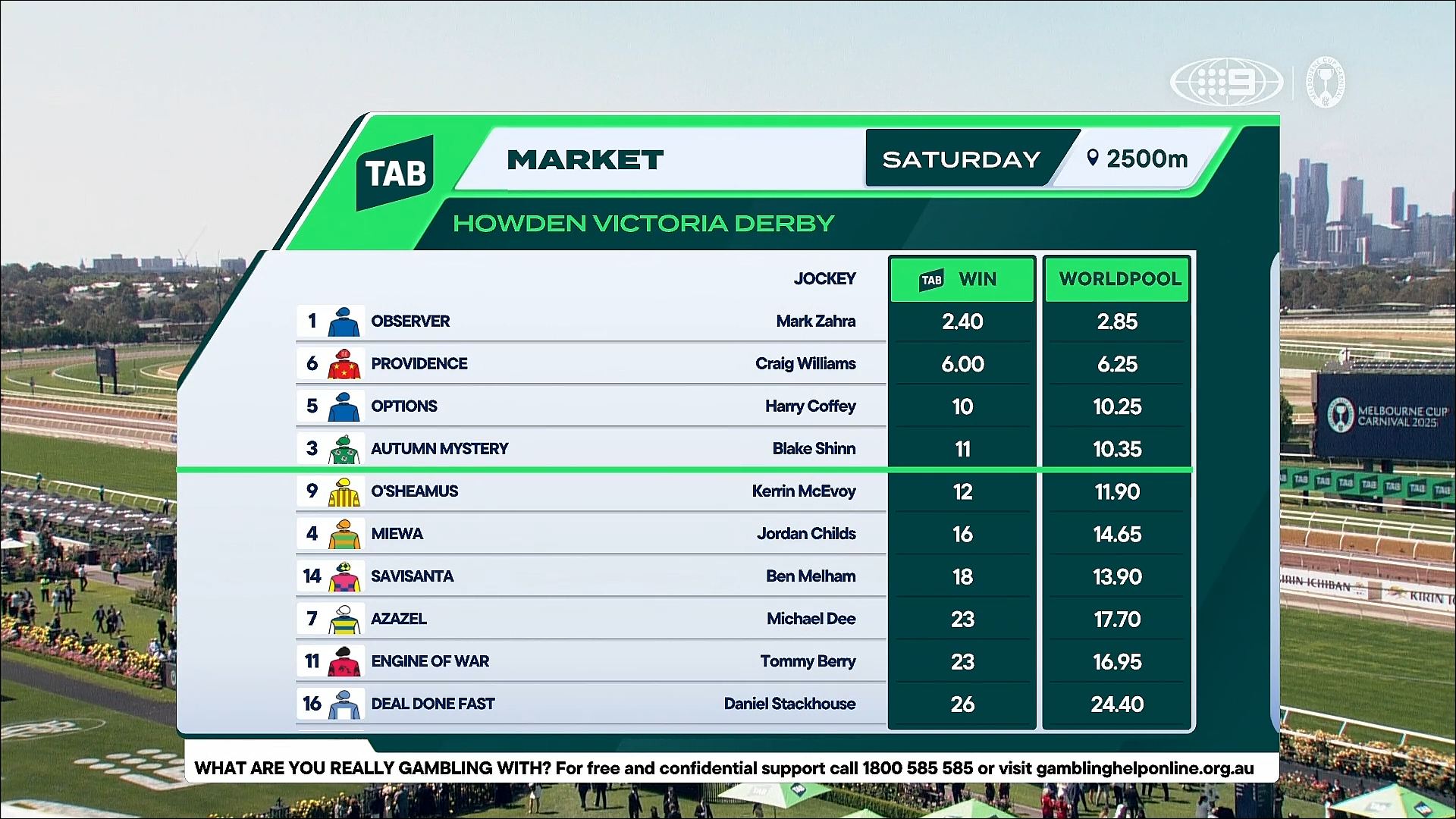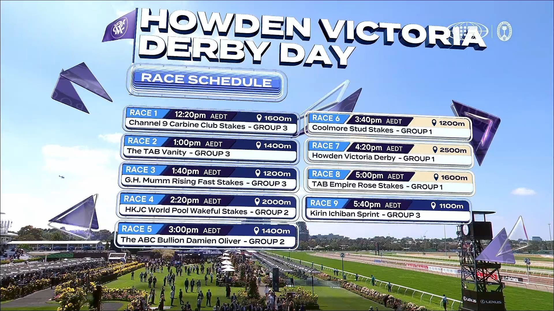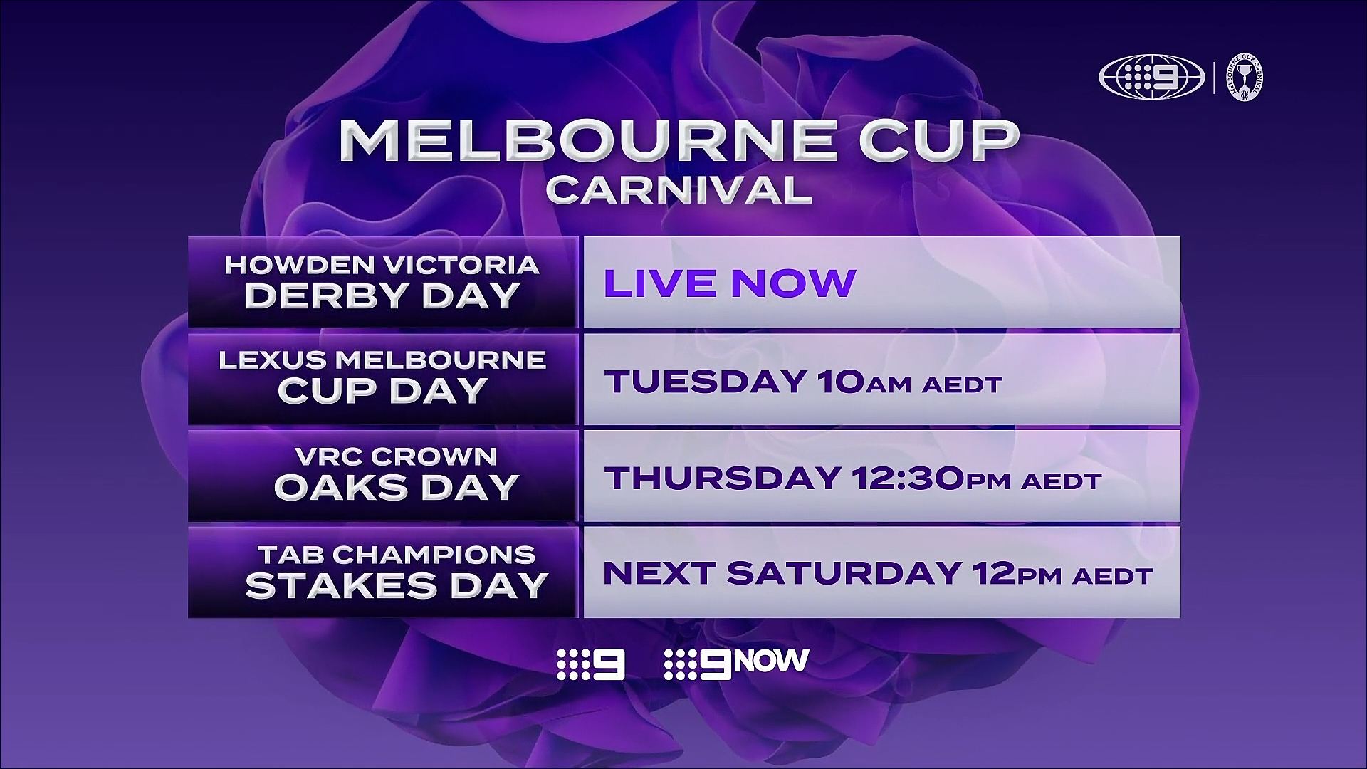 As the official broadcast partner, the 2025 Melbourne Cup Carnival gets underway with Howden Victoria Derby Day on Saturday, November 1 at 11:30am AEDT, ahead of Lexus Melbourne Cup Day on Tuesday, November 4, live and free on Channel 9 and 9Now.
