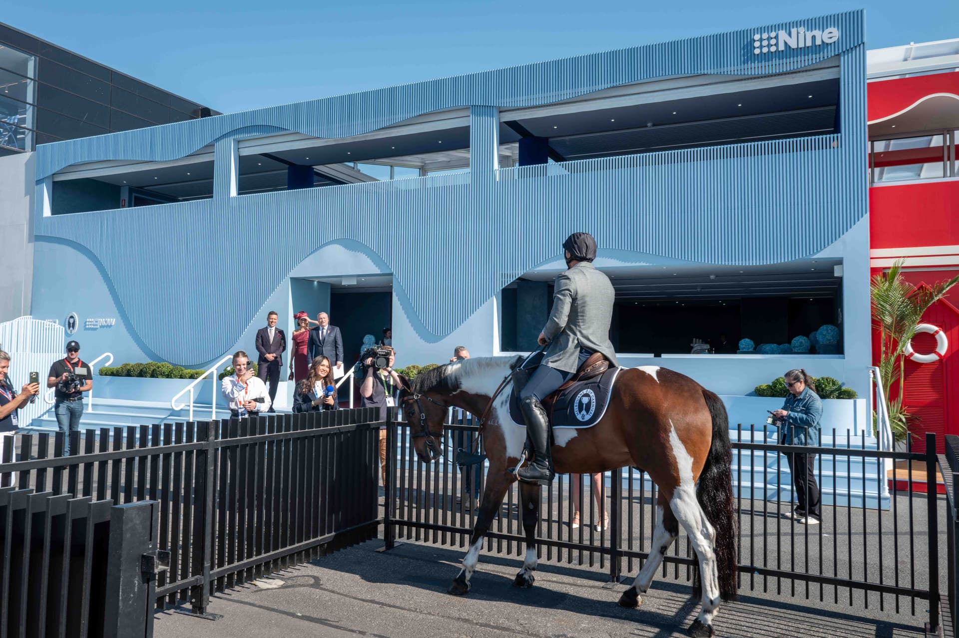 Nine’s post-race interviewer Billy Slater was front and centre on horseback for the reveal, ahead of his second year in the saddle aboard his trusted horse Sam. Alongside him, the 9Network host team of Eddie McGuire, James Bracey, and Francesca Cumani provided guests with the first look inside, detailing the design of the marquee which stands as a living expression of Nine; a space where Nine’s stories and spirit take physical form.