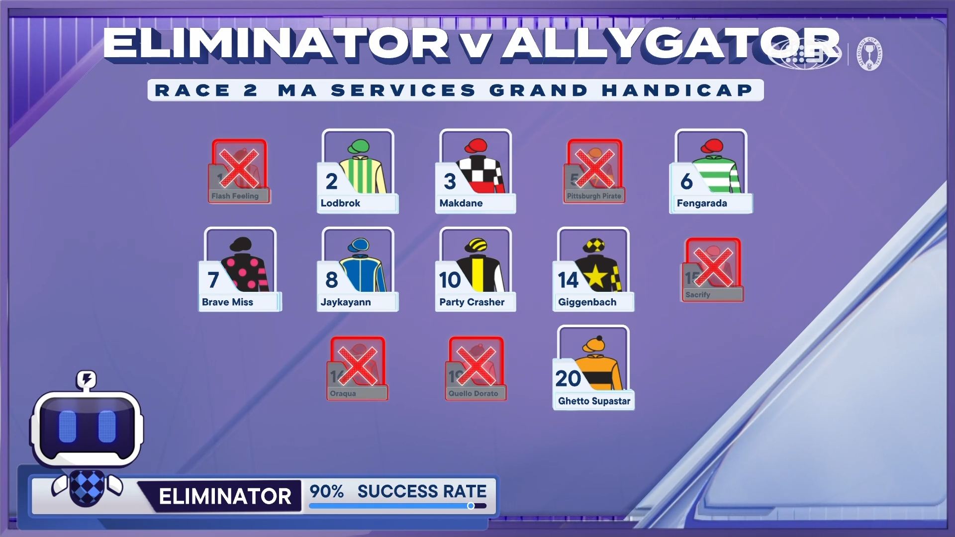 Eddie McGuire has done a sterling job as main host and is still a real asset to the network. The on-screen graphics during the races are disappointing though, much harder to read than 7/racing.com/Sky.