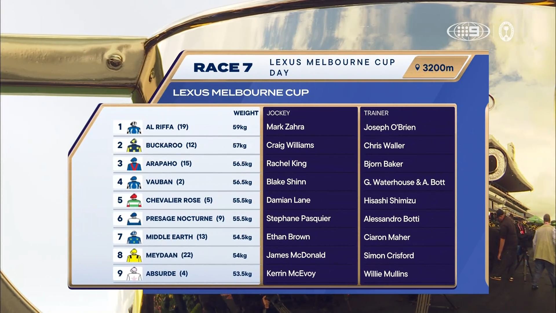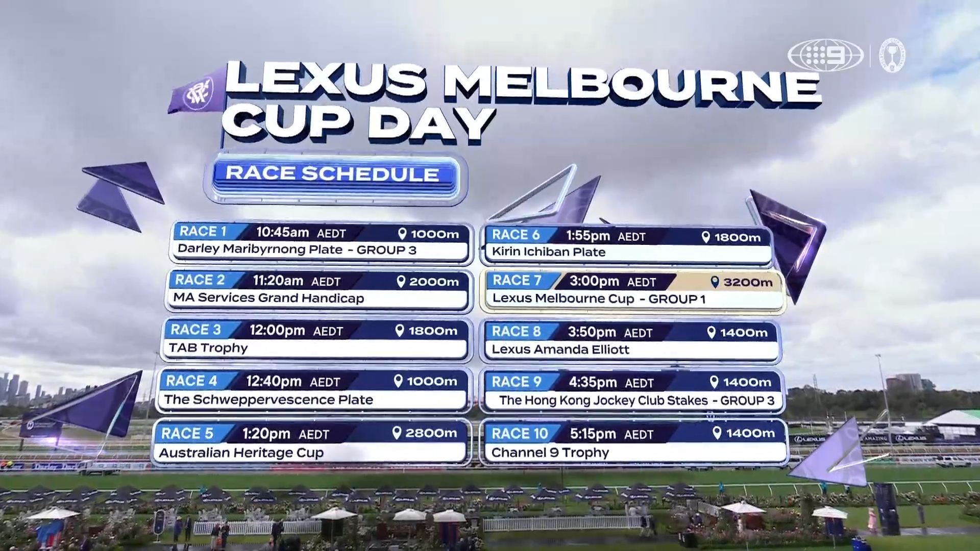 That explains the Melbourne Cup Carnival logo next to Nine’s watermark.