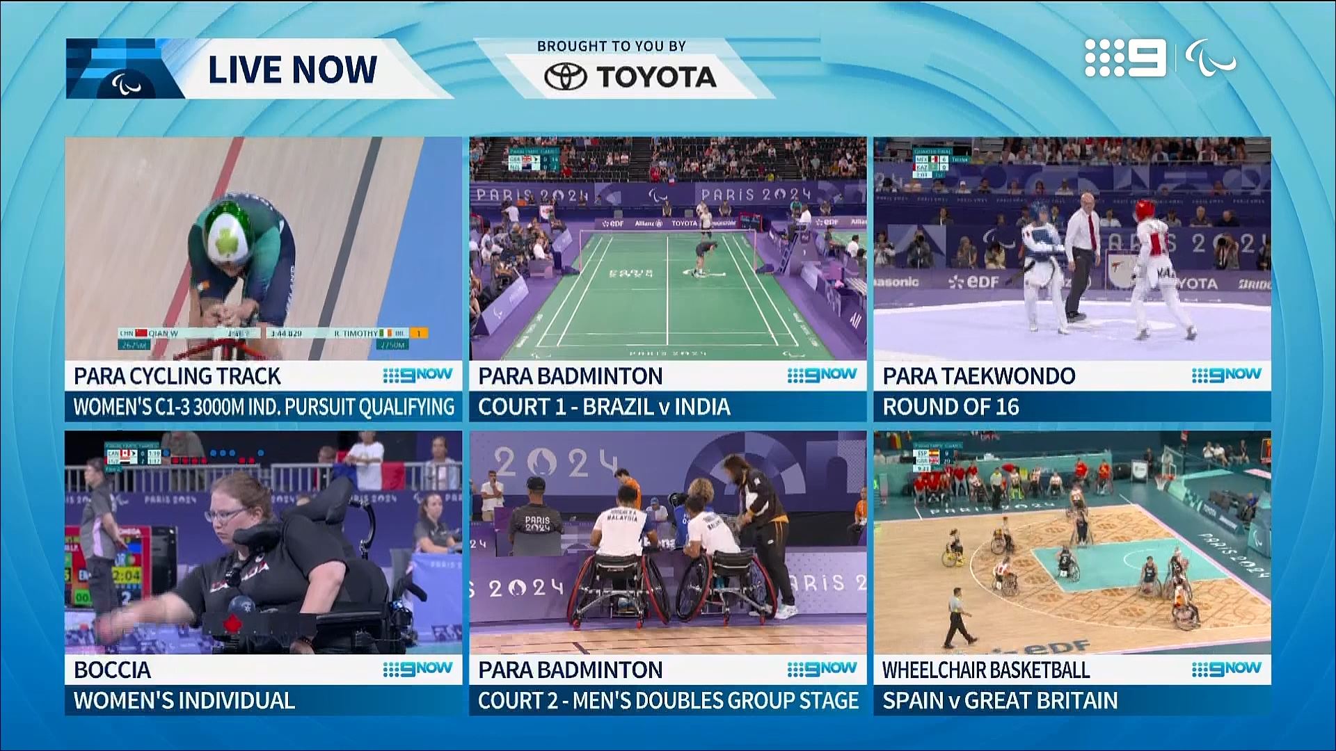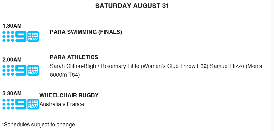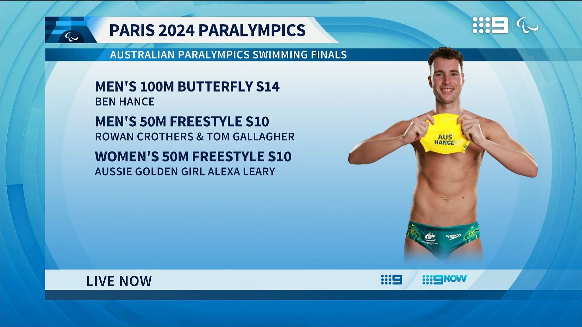 All the Live action is available on a curated Paralympics channel across Channel 9HD and 9GemHD, with every moment streamed on 9Now, where you can also stay up to date with Daily Highlights, Daily Top 10 Moments, and curated highlights for Team Australia, Para Swimming and Para Athletics.