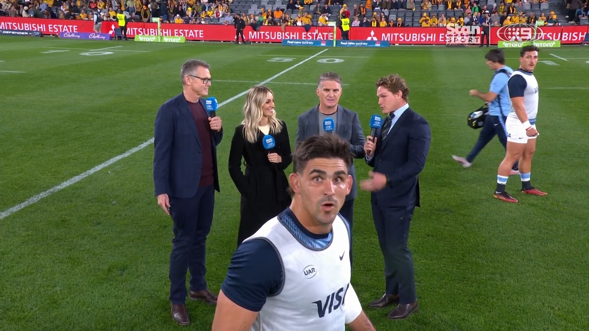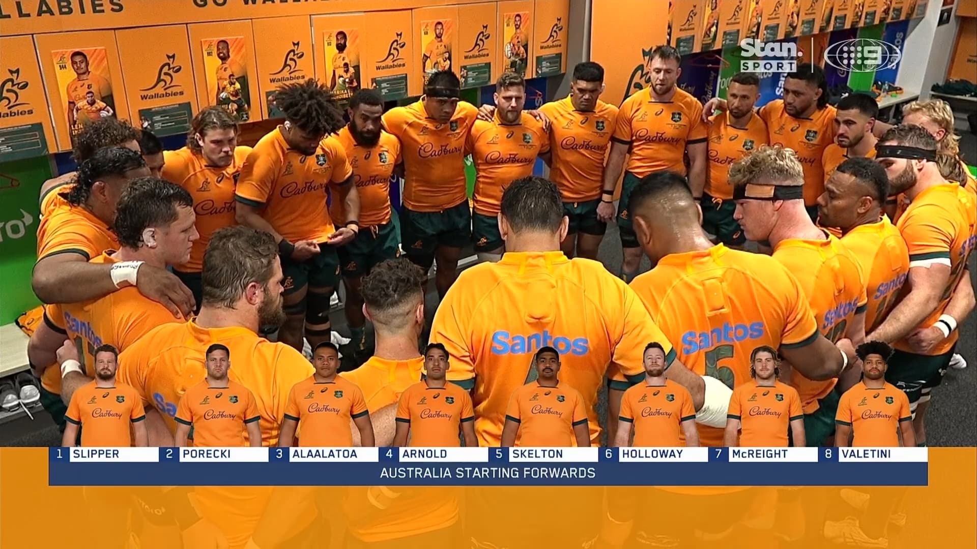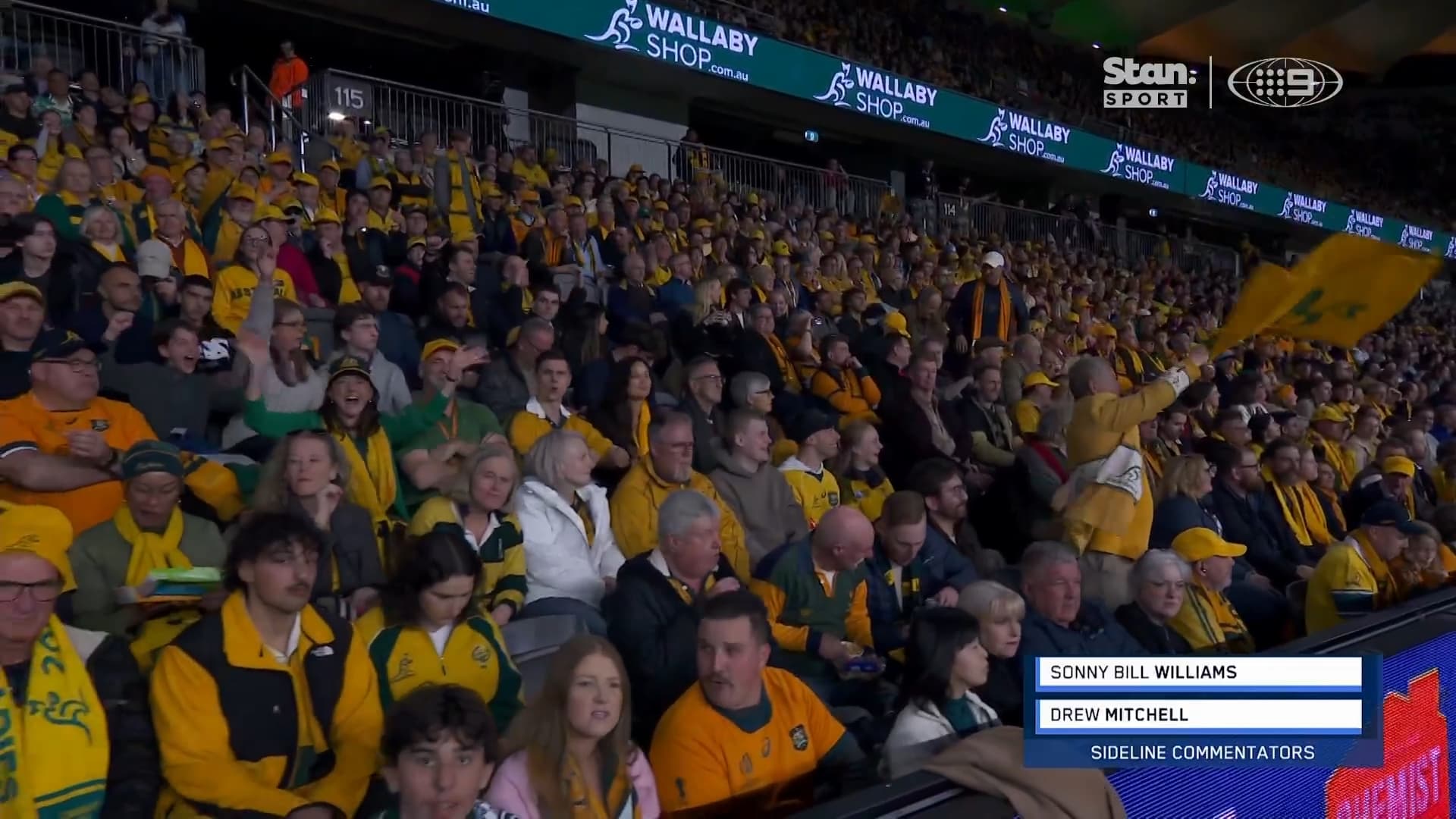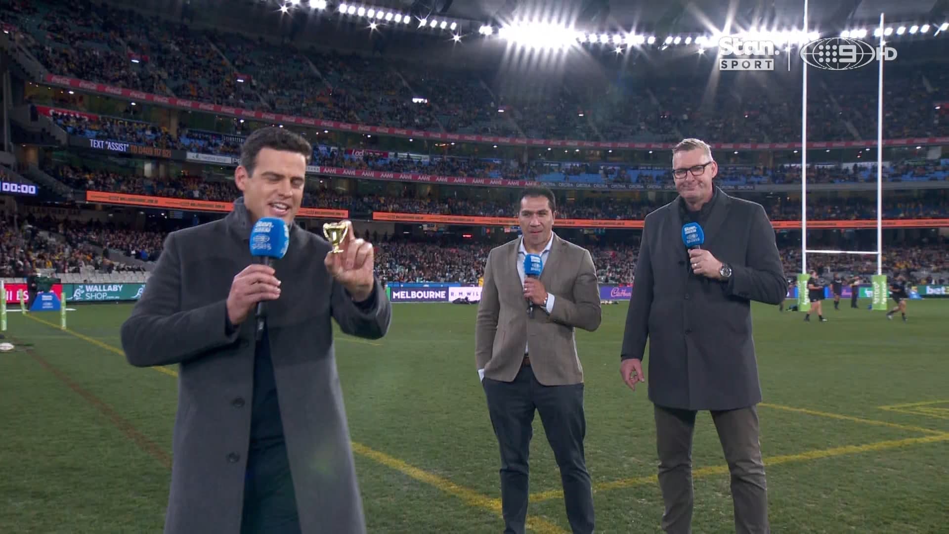 In commentary for Nine’s Wide World of Sports are Wallabies legends Tim Horan, Drew Mitchell and Justin Harrison, All Blacks dual World Cup winner Sonny Bill Williams, former international Morgan Turinui, caller Sean Maloney, hosts Nick McArdle and Michael Atkinson, plus dual international Allana Ferguson on the panel.