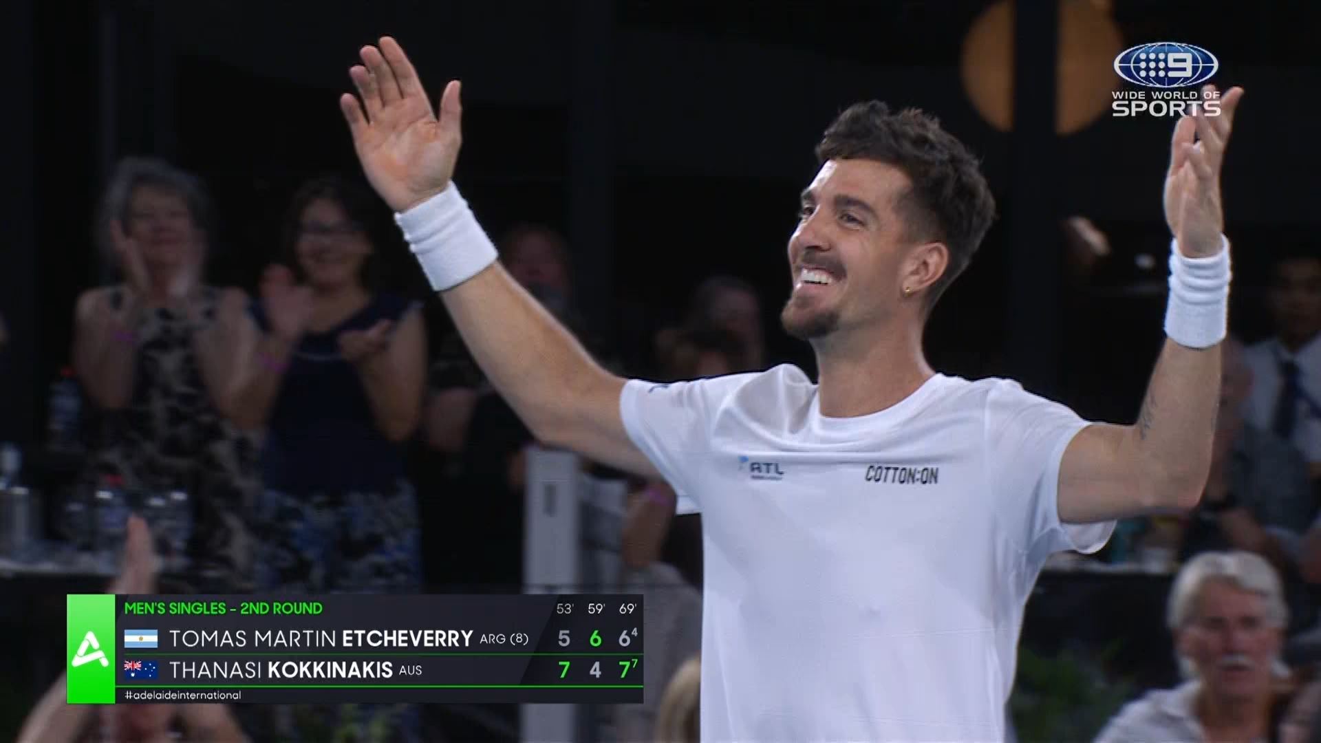 Great match between Kokkinakis and Argentina’s Tomás Etcheverry at Memorial Drive in Adelaide right now on 9Gem, his home crowd riding every shot, so loud, keeping the Aussie in it I reckon.