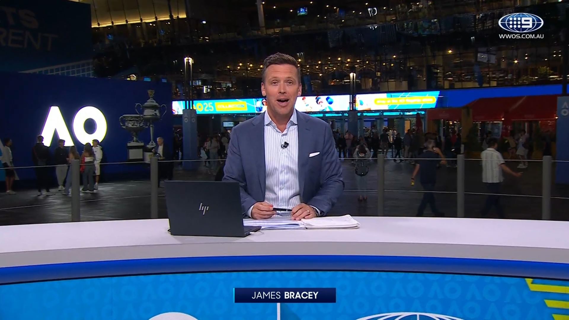 Nine also looked a little unsure of what they’d do right up to 7pm, with Bracey forgetting to tell Sydney and Melbourne viewers on 9Gem to switch back to main channel with channel abruptly cutting. While main channel at 7 after wwos opener crashed straight into the tense match, he welcomed viewers back but then the match left for a minute or two while showing Alex and Jannik warming up under RLA. And with this quarter final still going, any pre game show tonight might’ve gone out the window, save for a while being needed to change-over everything between matches.