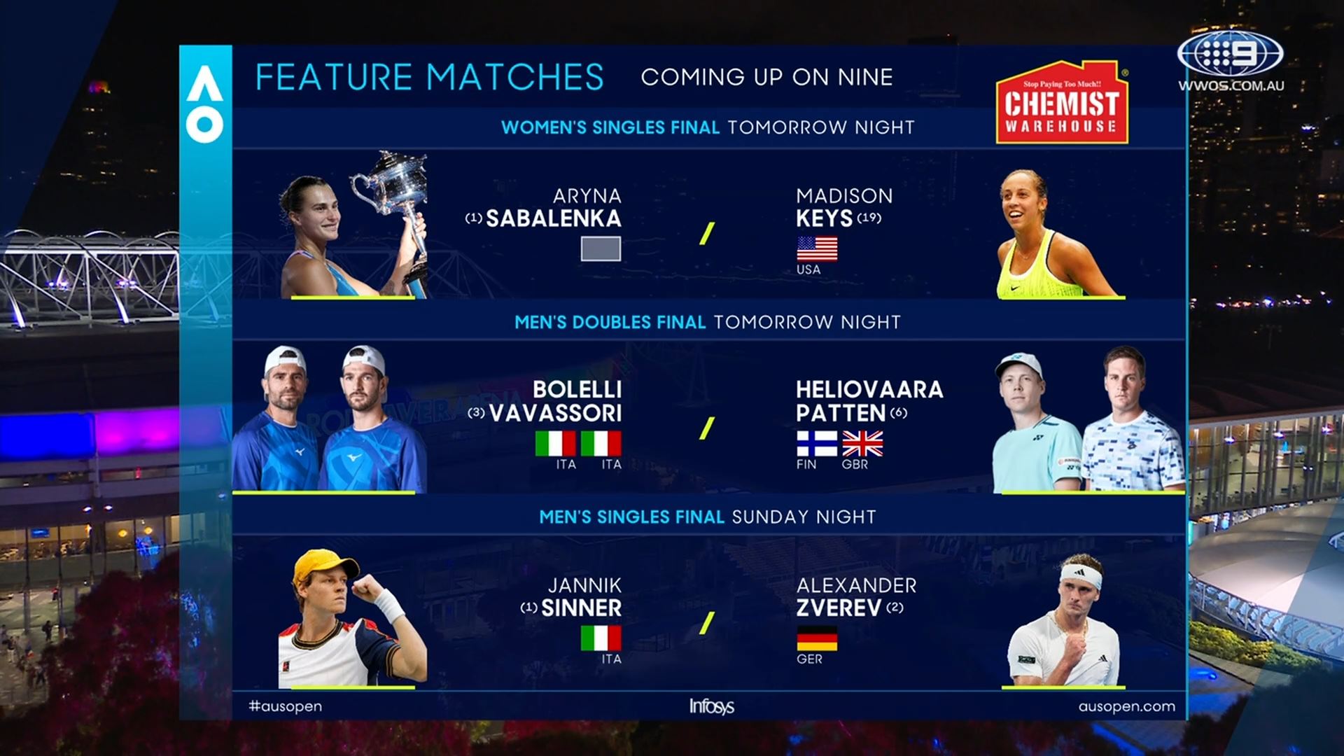 DAY 14: AUSTRALIAN OPEN BROADCAST SCHEDULE