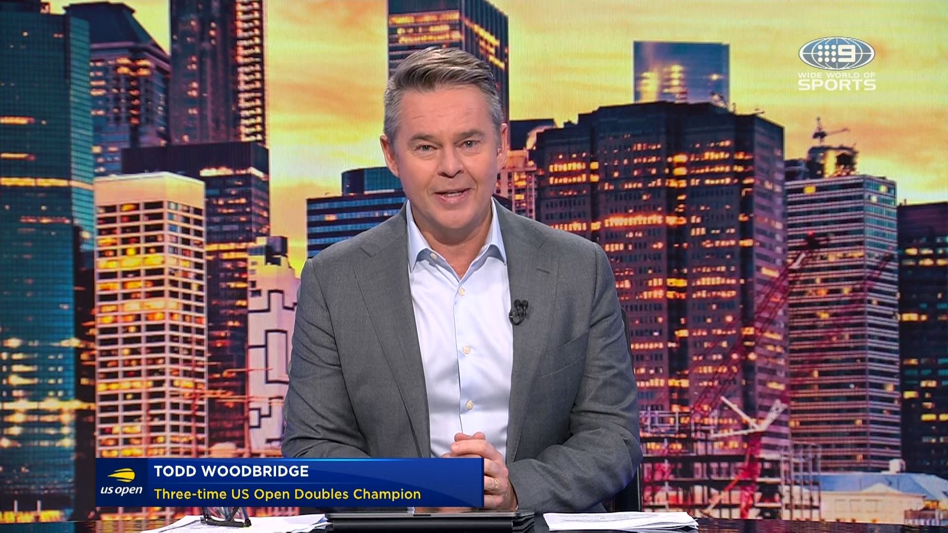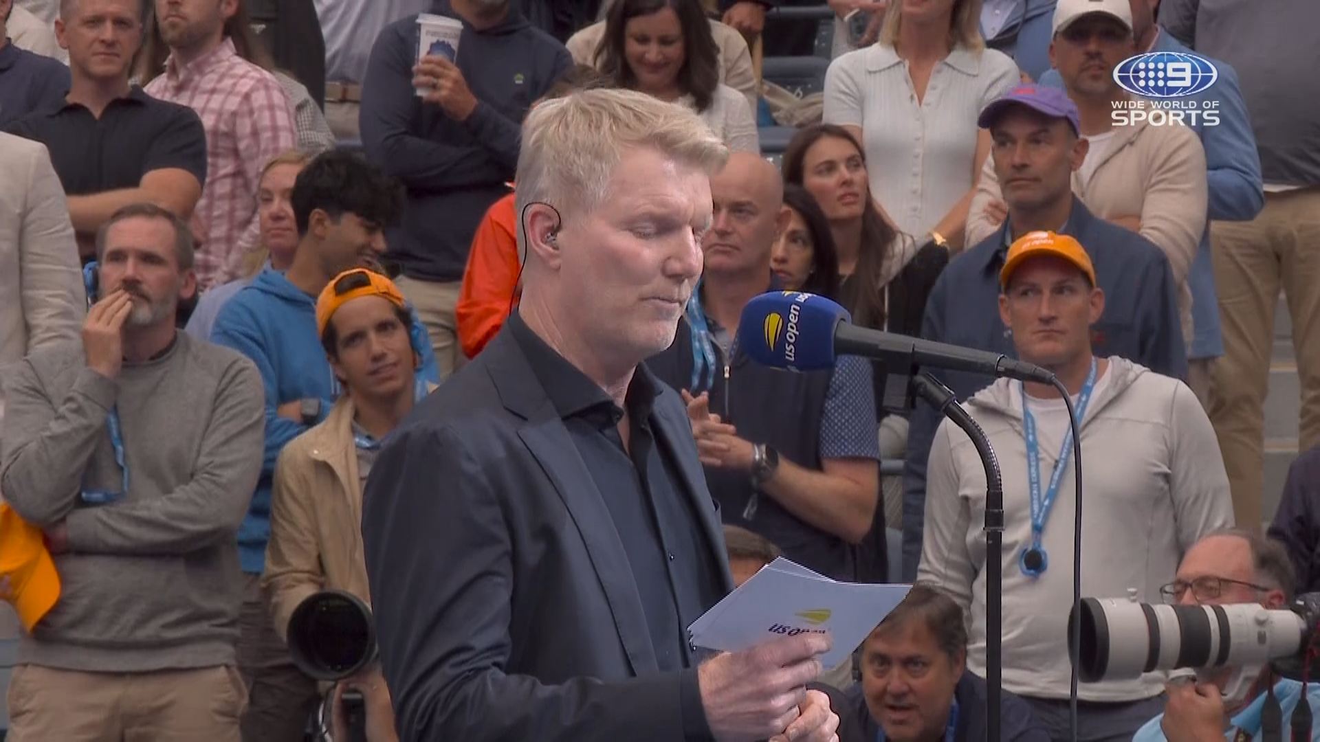 Jim Courier, normally a commentator/analyst on Nine’s Australian Open coverage, is MC’ing the post-match presentation following the men’s singles final.