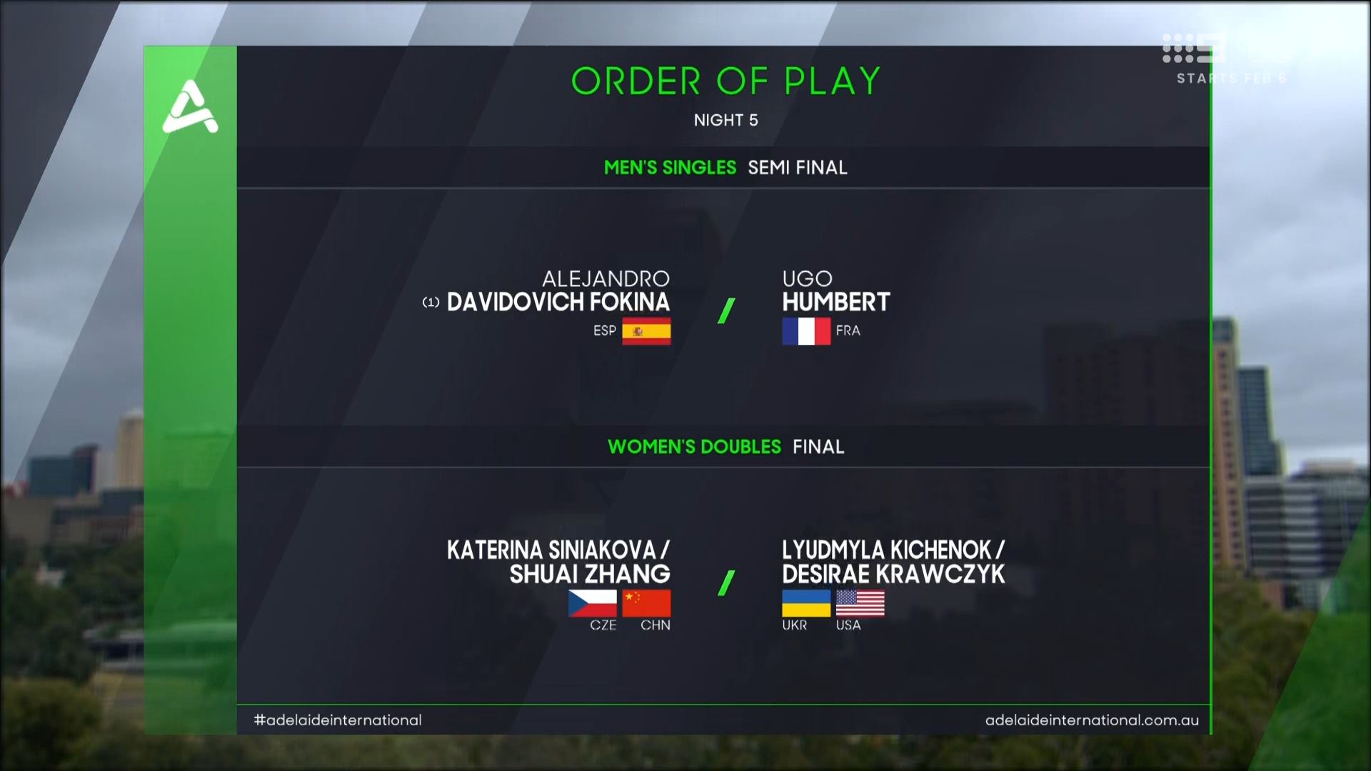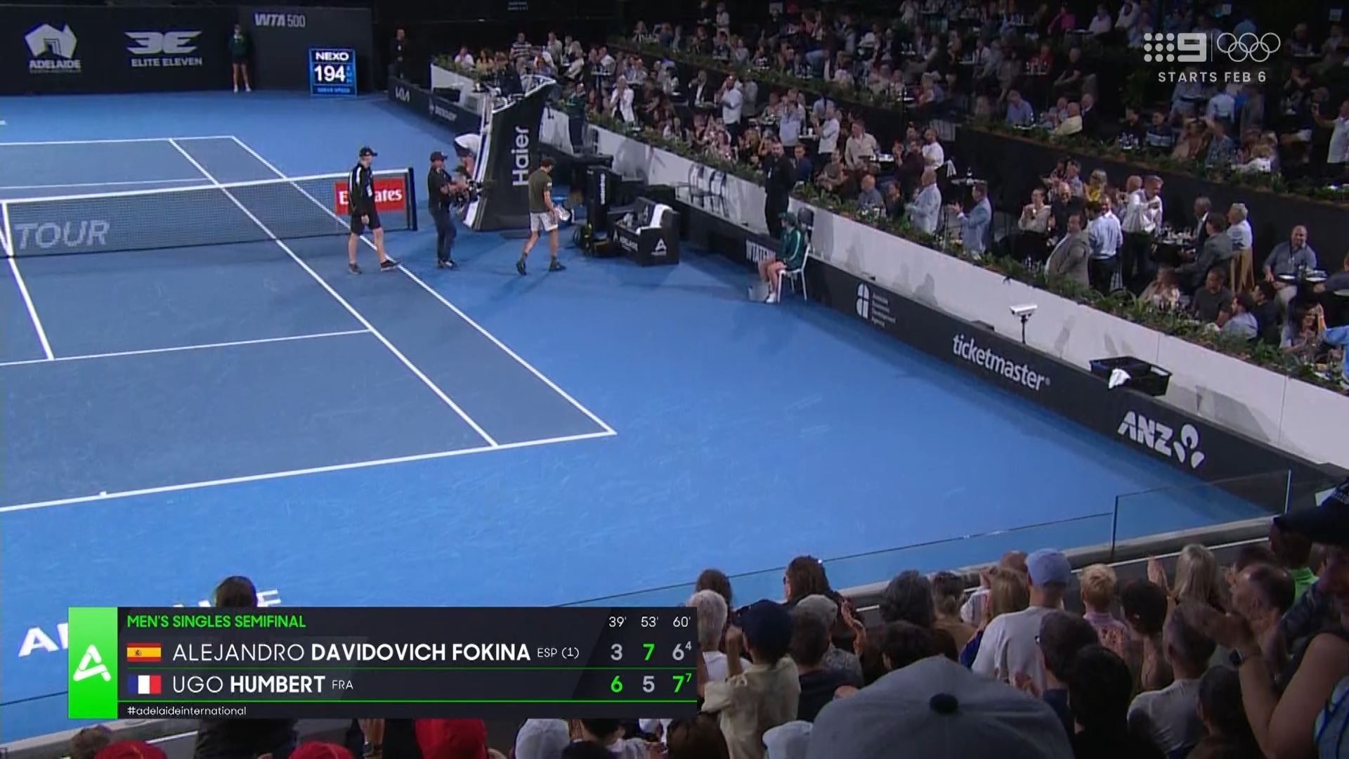 It also impacts the Adelaide International final (oddly enough also on Nine - 9Gem and a sister TA event!)