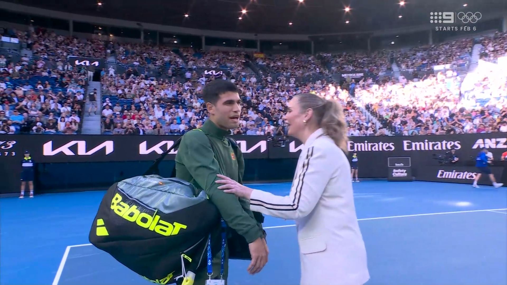 Obviously Nine will opt for the two No. 1s and RLA, Sabalenka and Alcaraz, can build them up for the first big Sunday night and as “former AO champion and back-to-back finalist”, Carlos speaks for itself and the local Aussie.