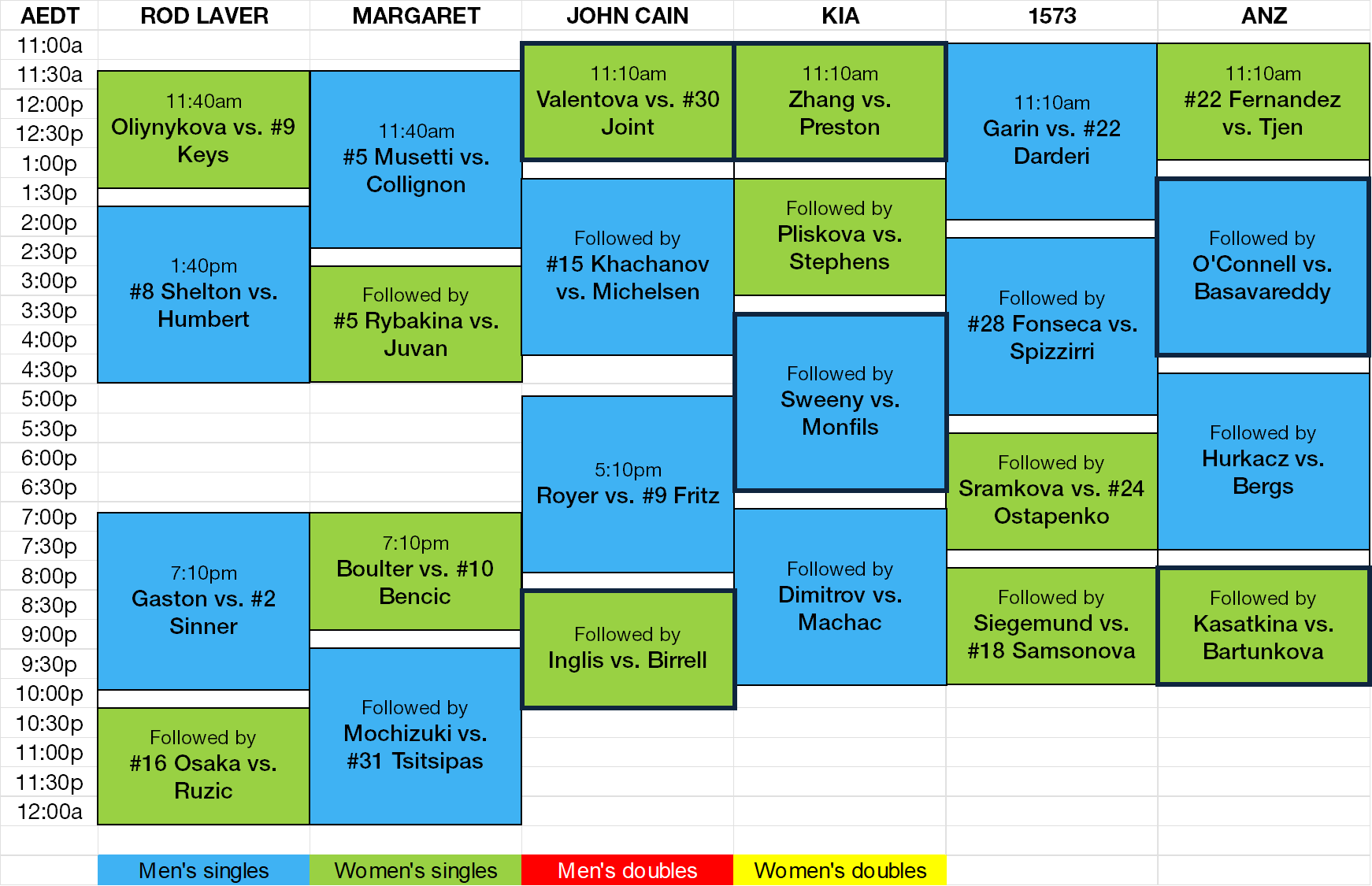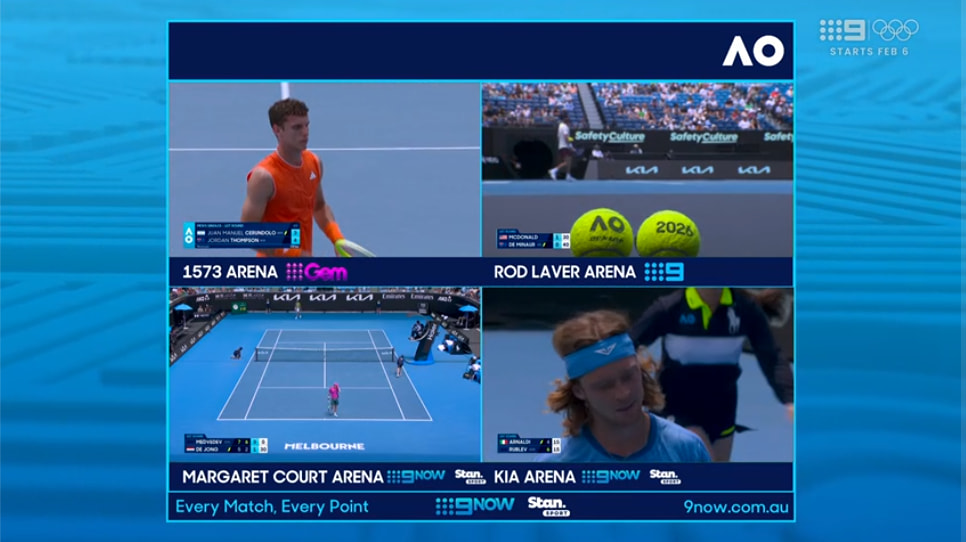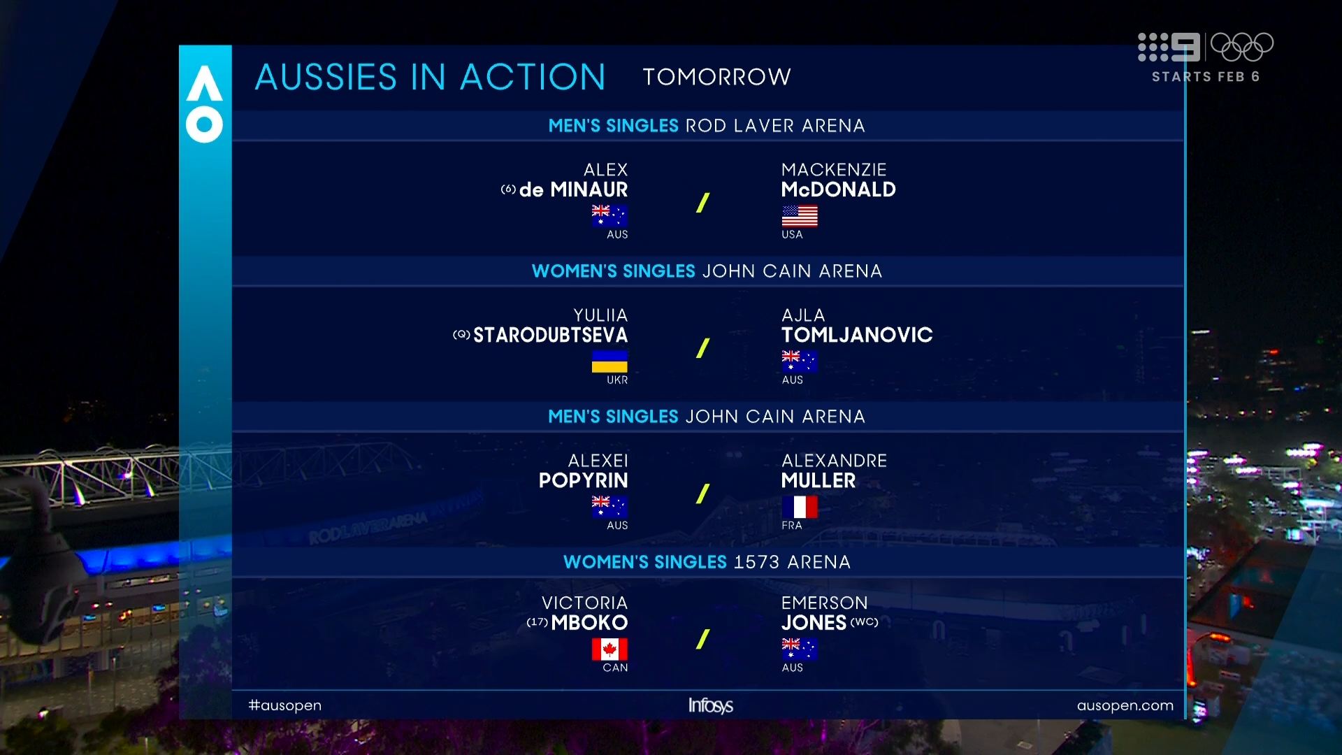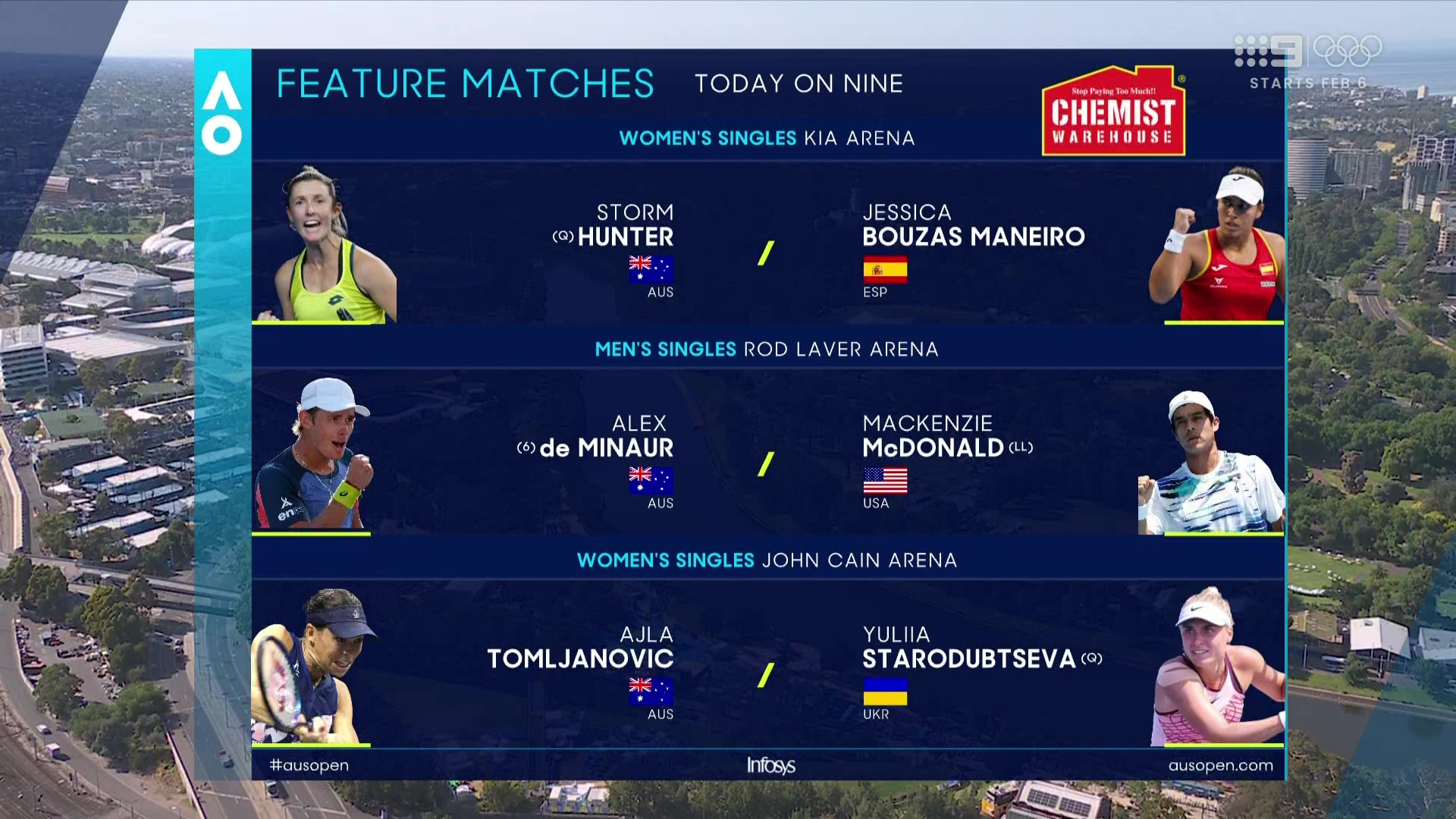 I realise they’ve gone with the night centre court World No. 1 match, which was a feature for today and promoted in Aryna Sabalenka. While they’ve moved the Aussie Jason Kubler and Tiafoe match to 9Gem.