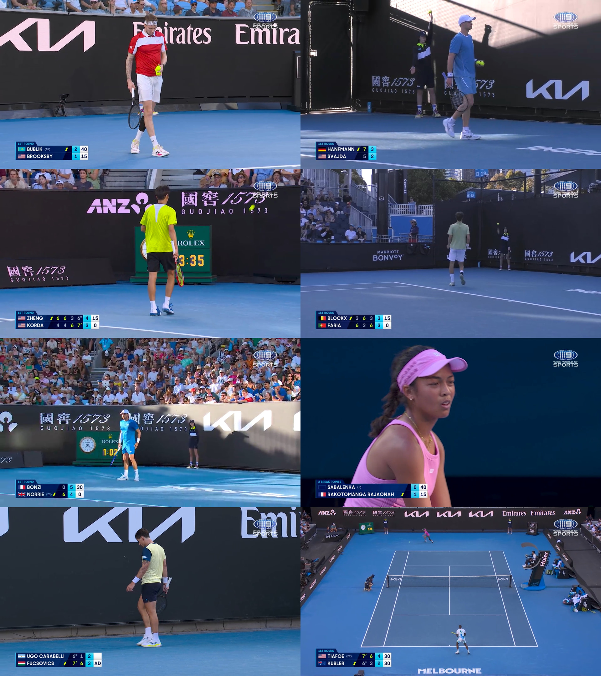 Alcaraz v Walton on 9, Williams v Danilović on Gem and a 3 and a half hour 5 setter between Frenchman Bonzi and seeded player Brit Cam Norrie on 9Now, to name a few.