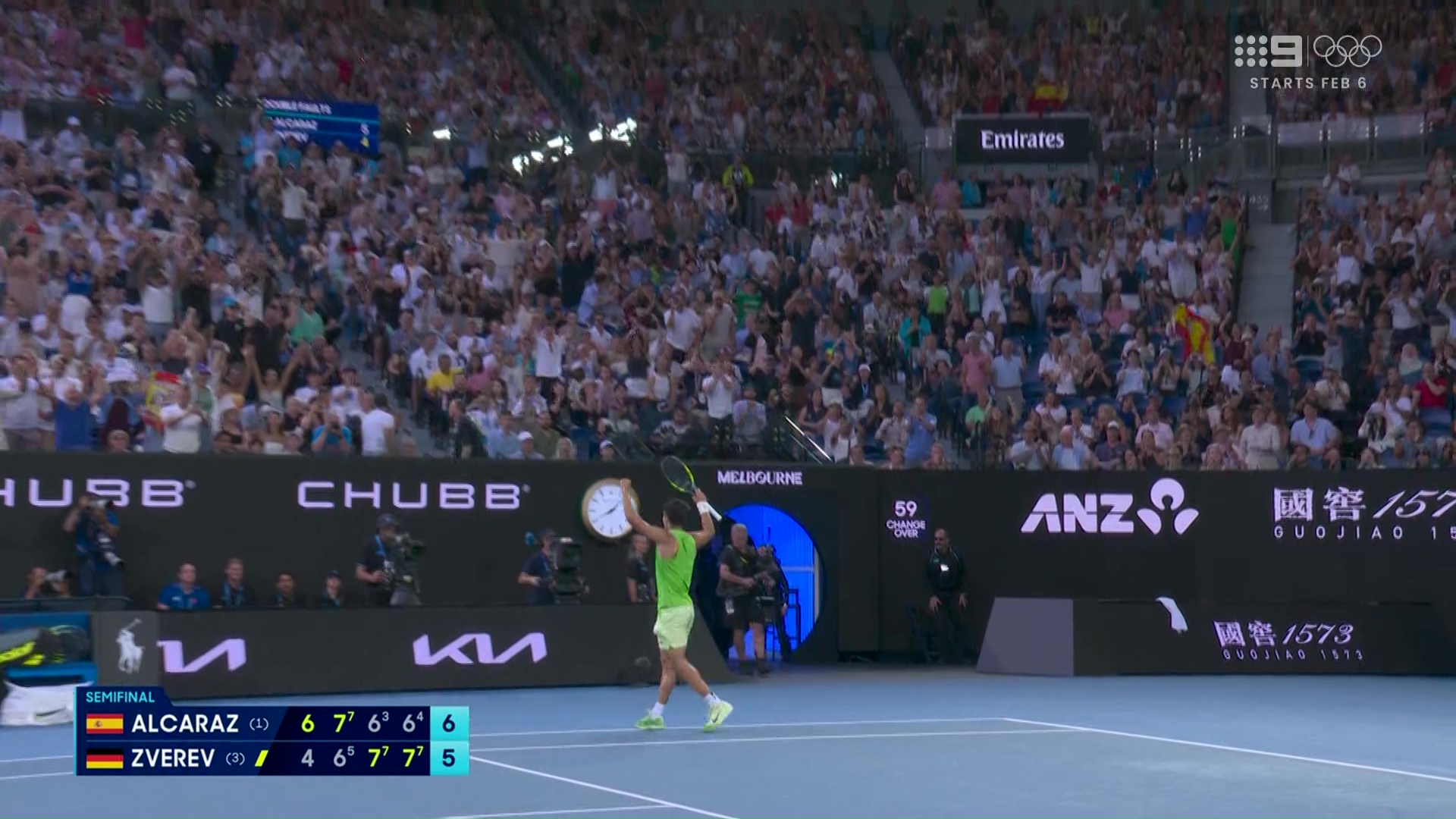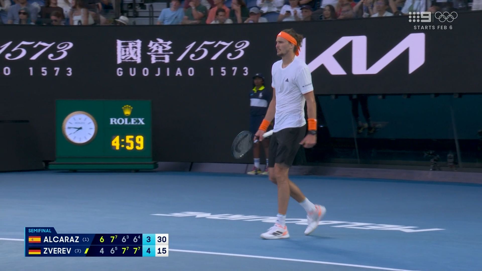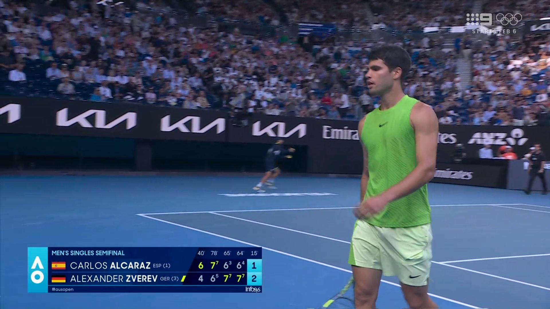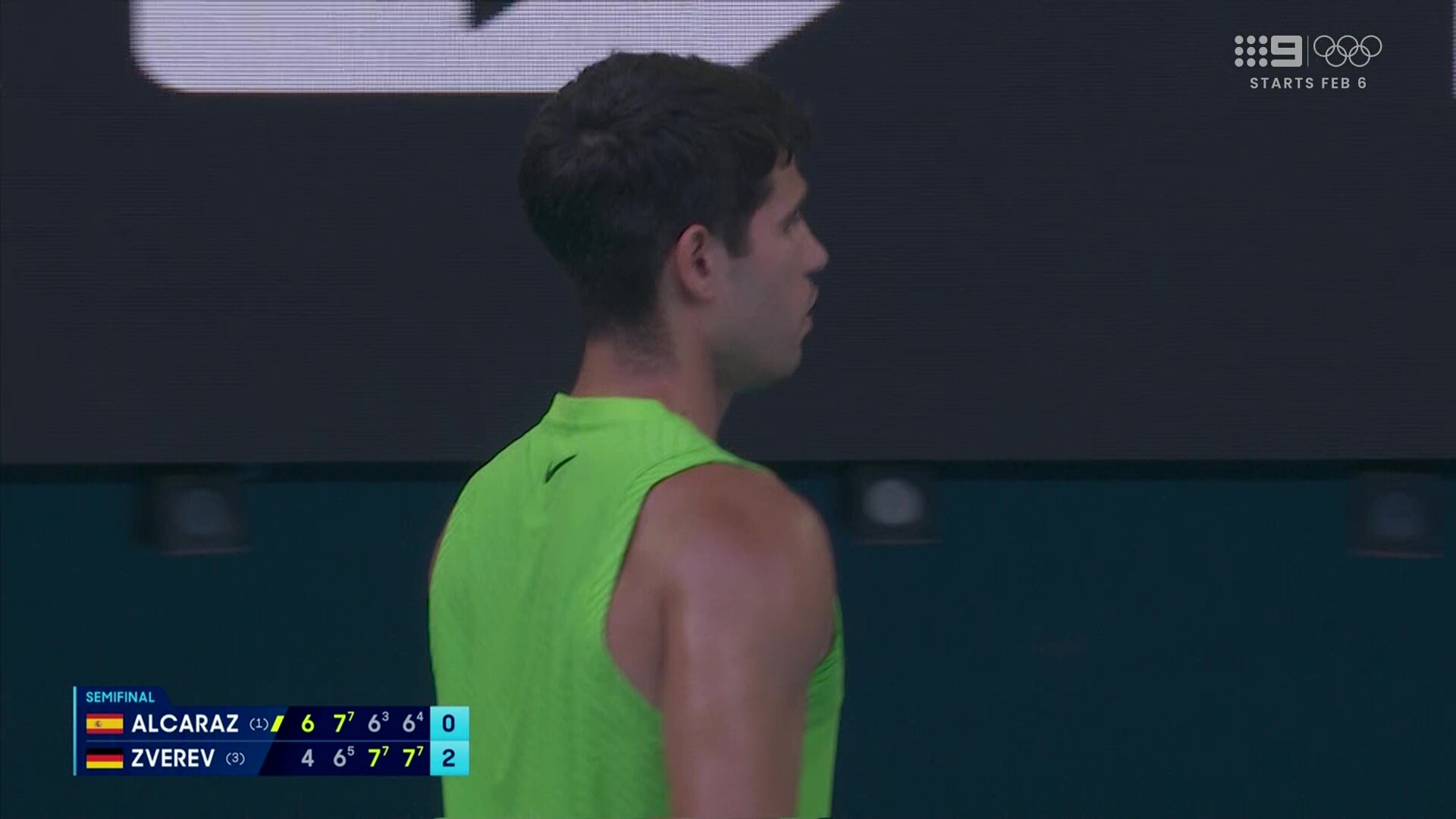 Nine getting its money’s worth with the Alcaraz-Zverev semi-final going into primetime.