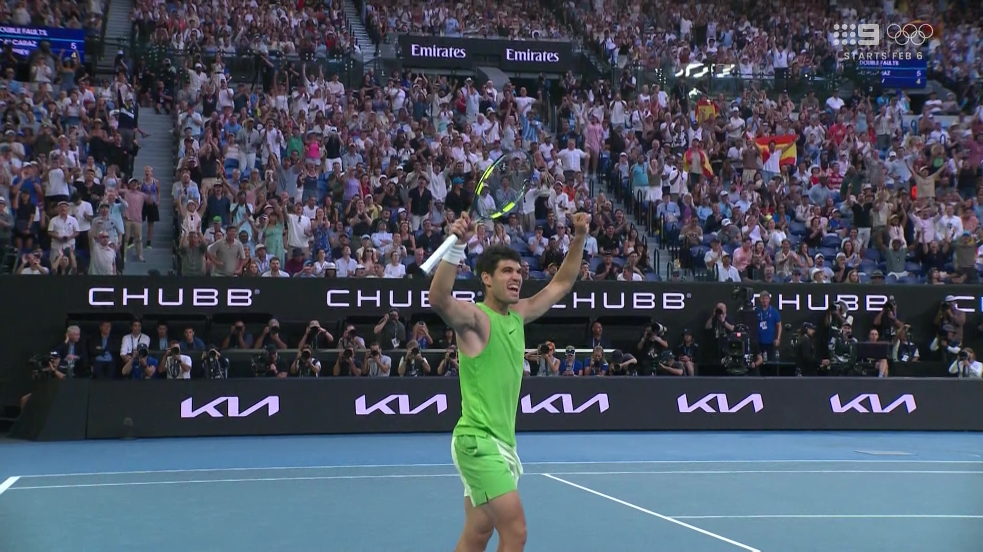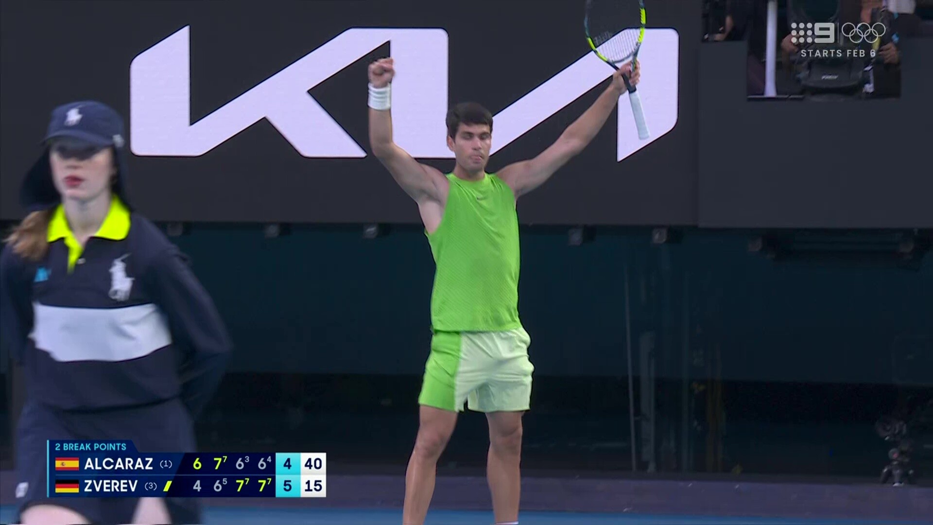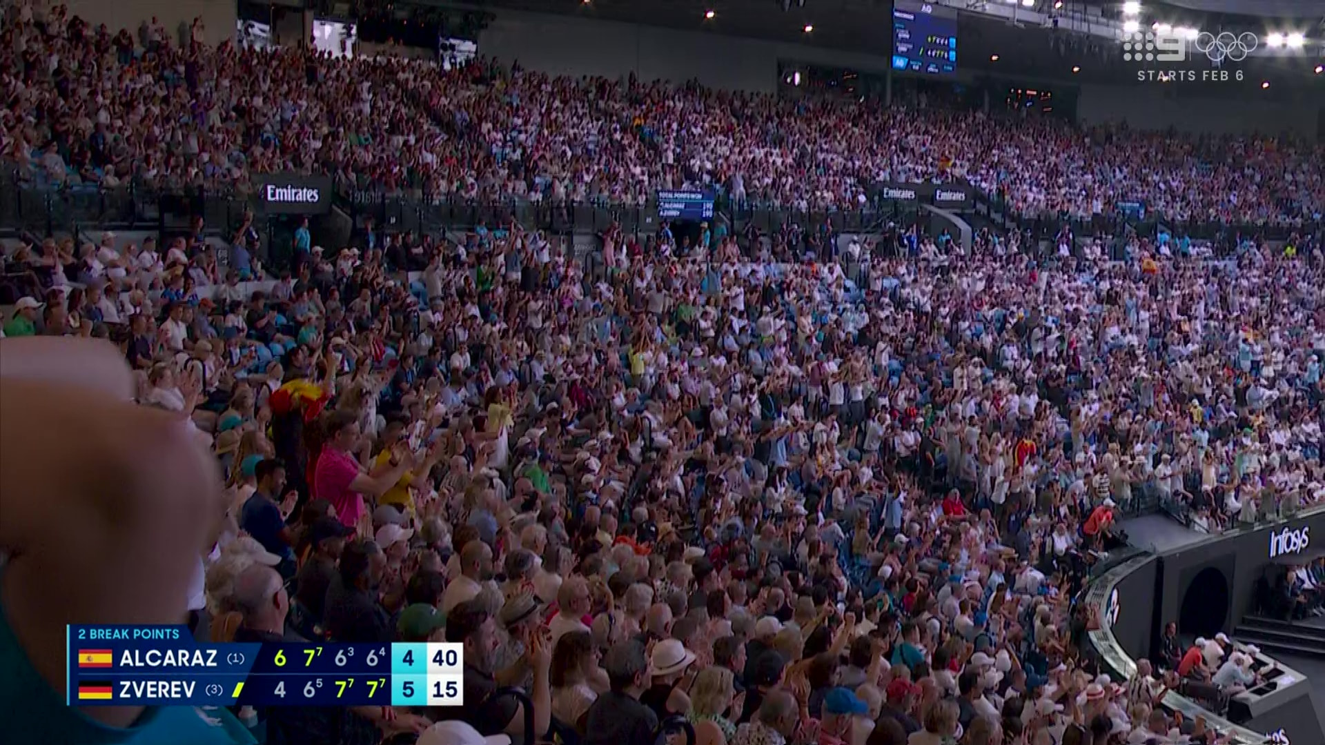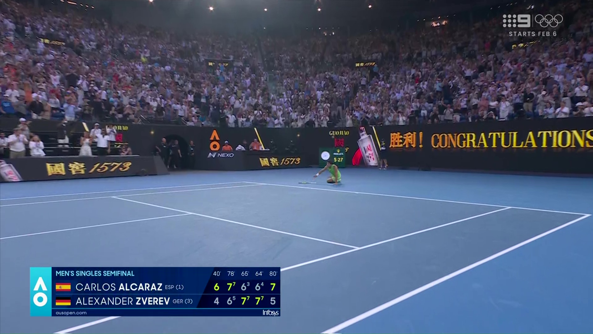 Nine getting its money’s worth with the Alcaraz-Zverev semi-final going into primetime.