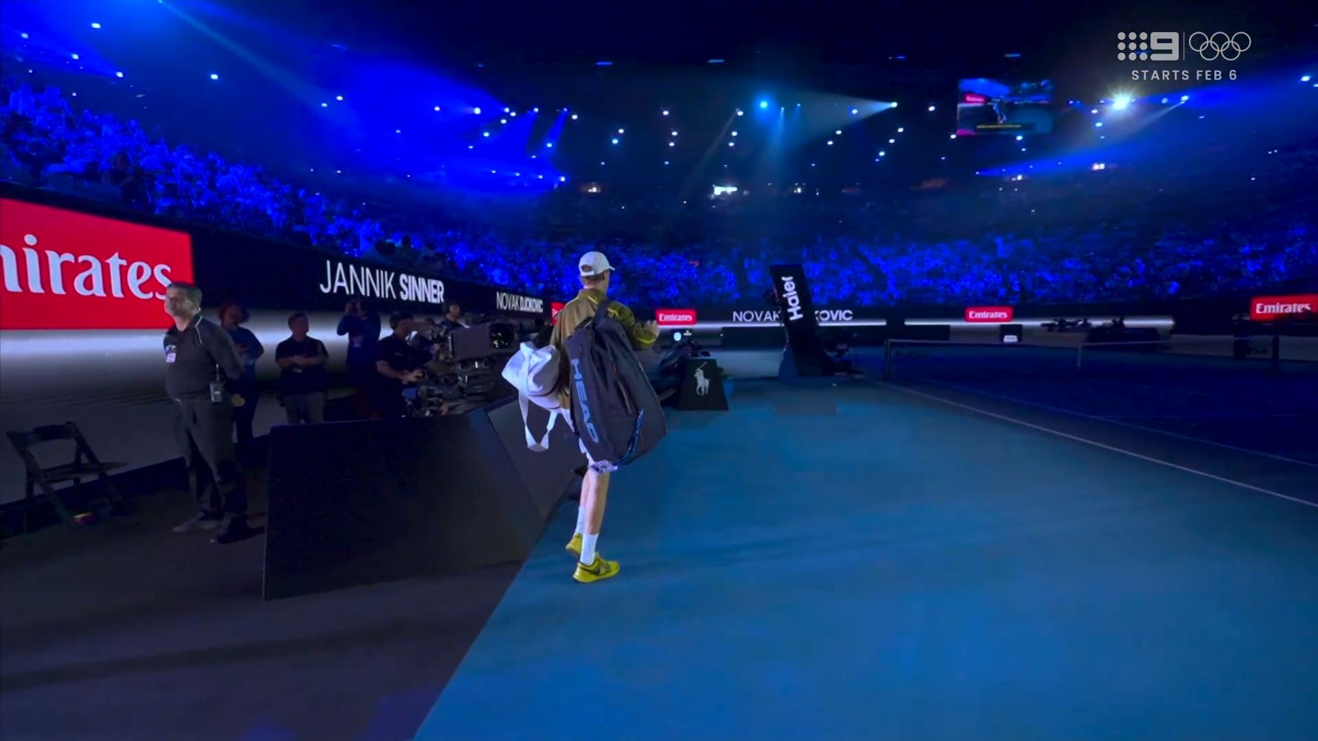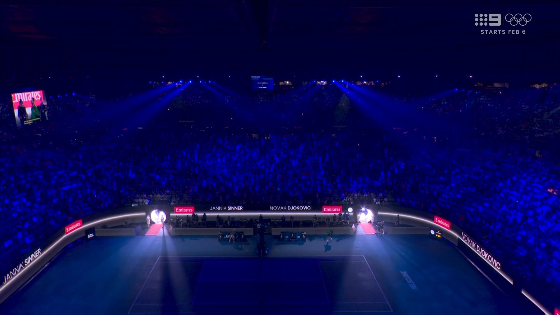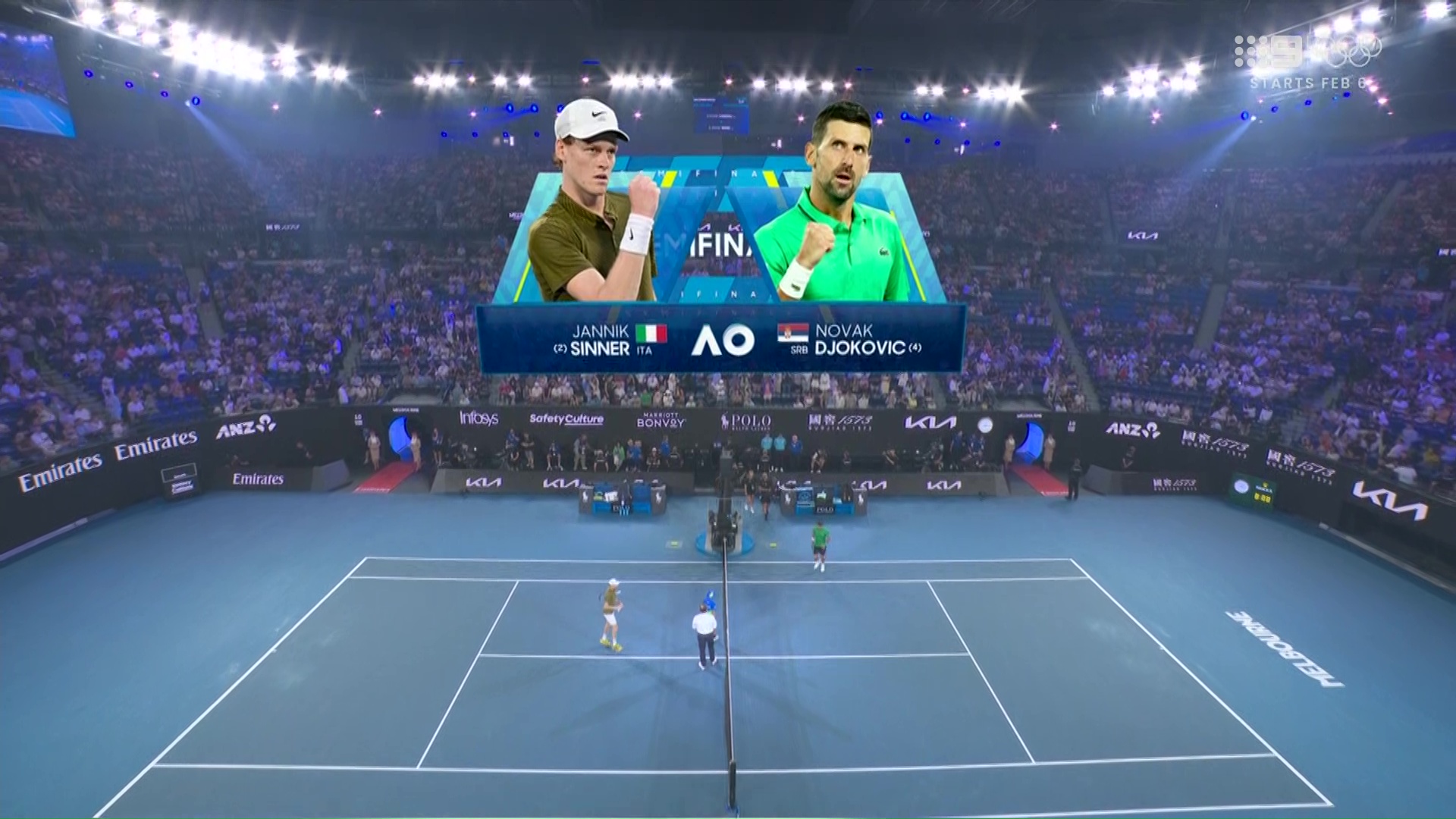 Djokovic v Sinner will start at 9pm AEDT on 9 and 9Now. Has a bit of rhyme in it.