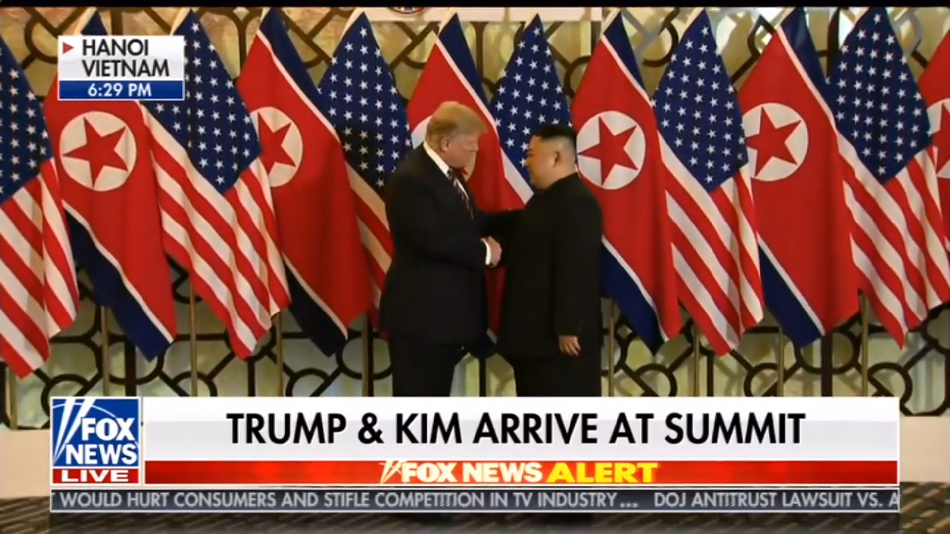 Looks like Kim got the upper hand and Trump tried to shake his hand off his arm.